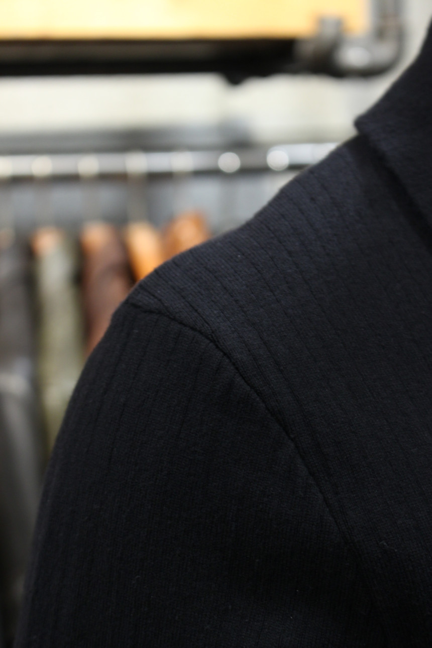 블랙컬러의 면혼방원단으로 적당히 무게감이 있으며 골지조직으로 스판성이 좋습니다