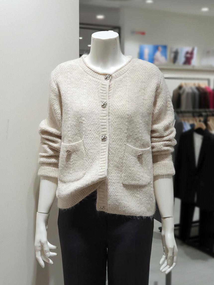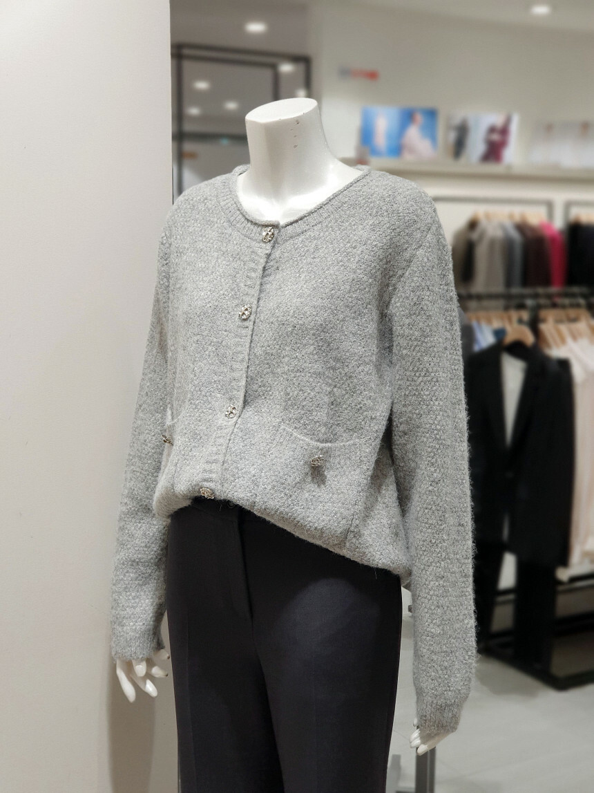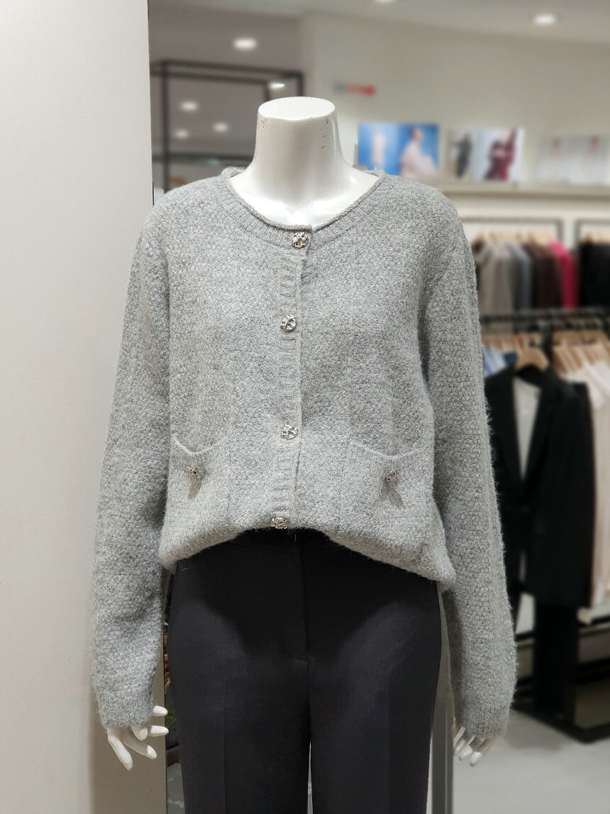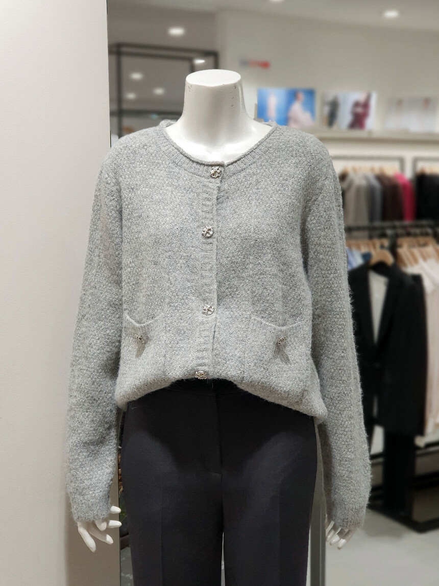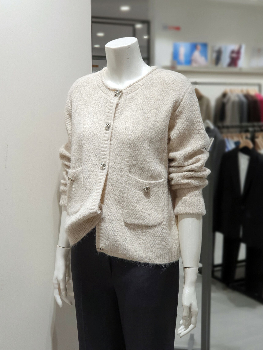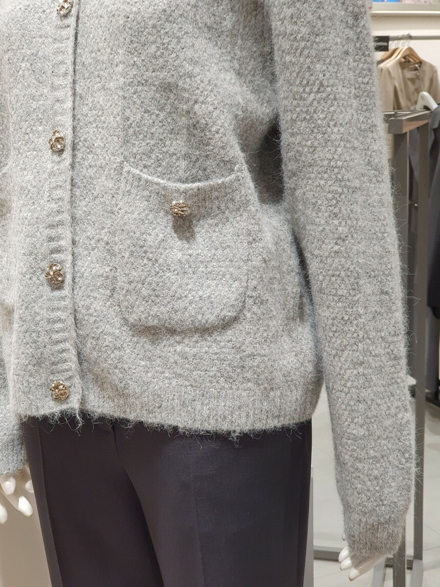 버튼 패치 포켓 디테일로 포인트를 주는 니트 카디건입니다.