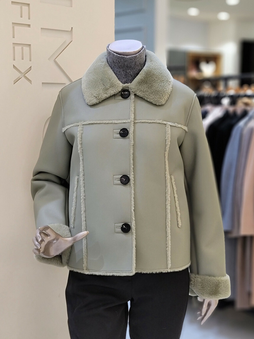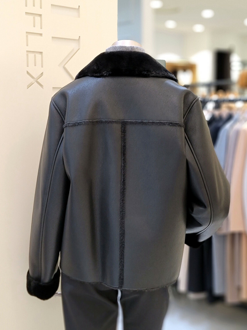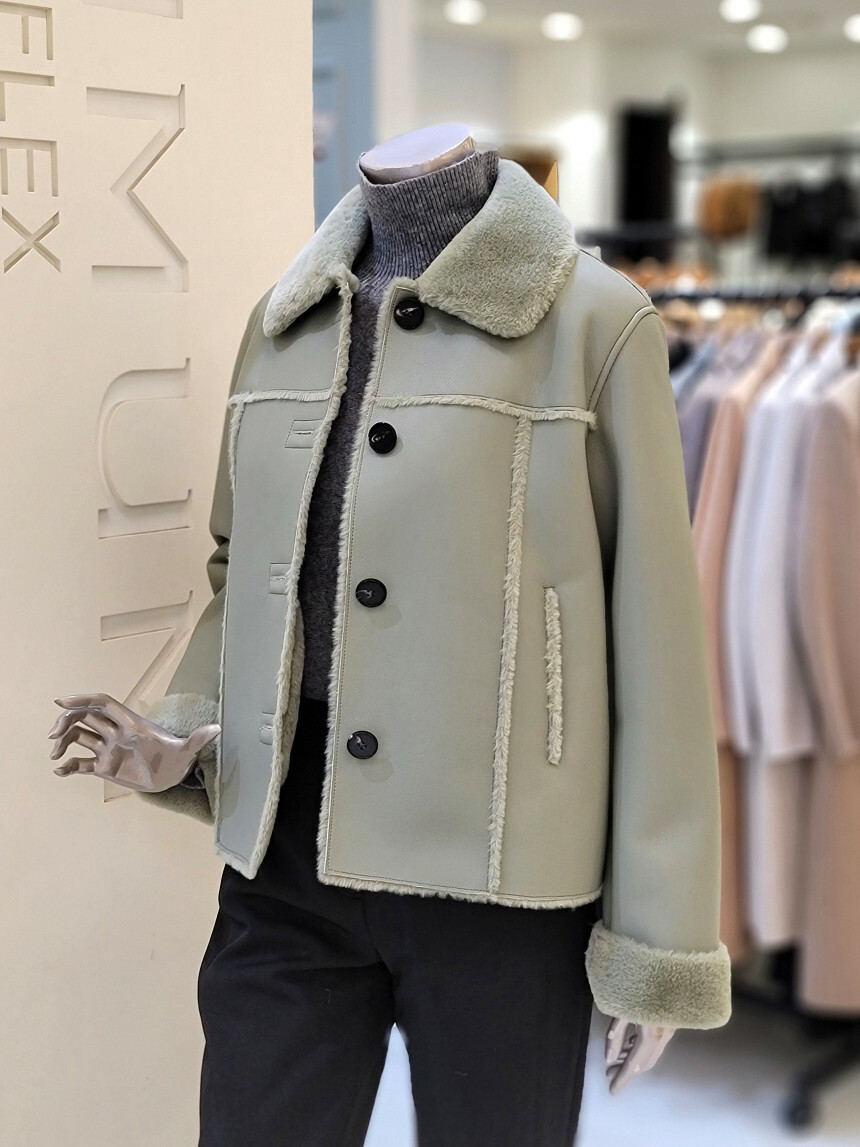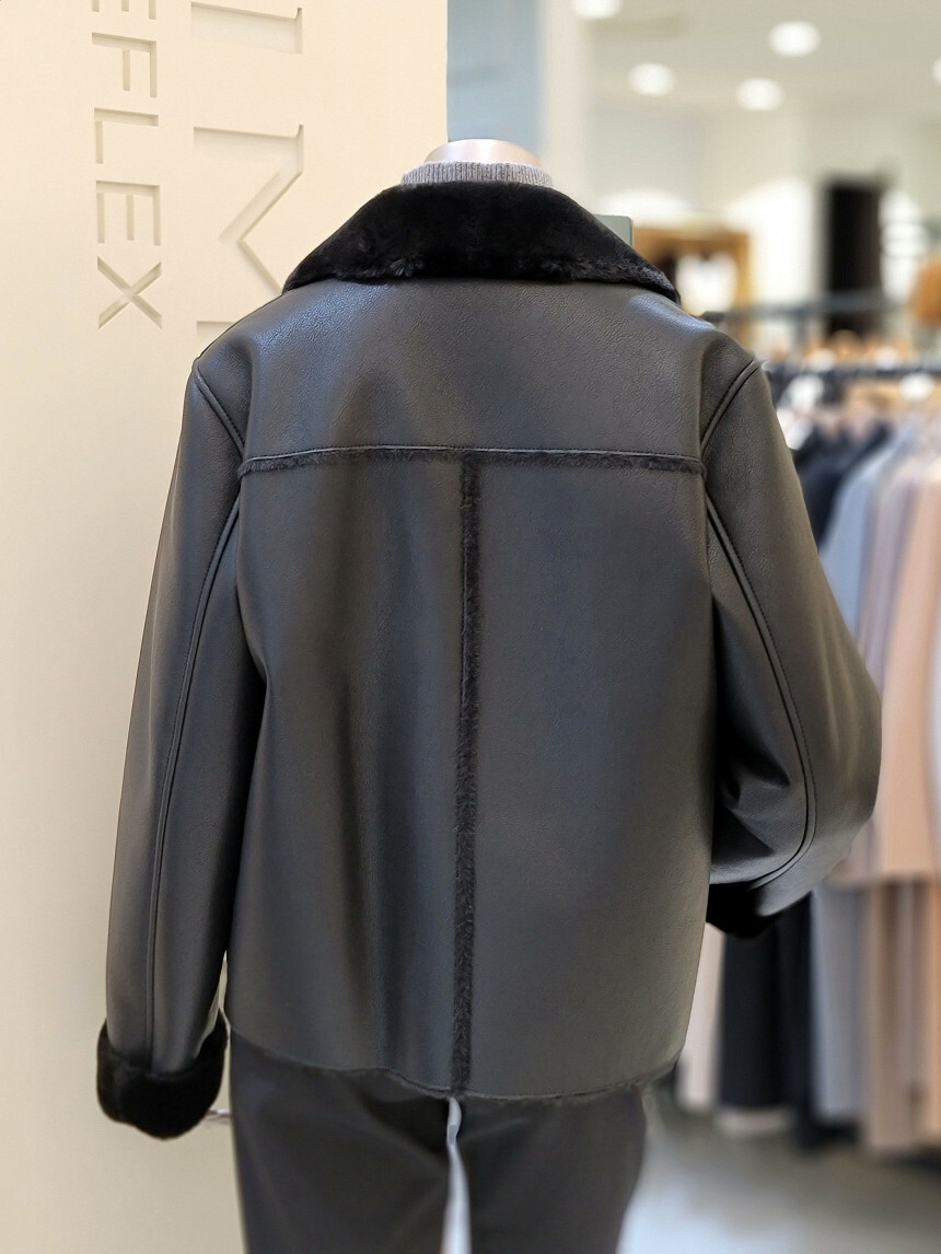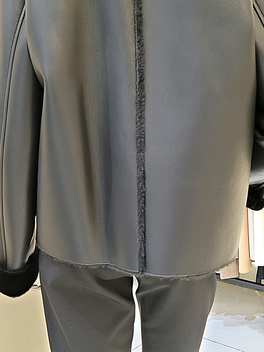 이면 시어링 소재로 칼라와 슬리브 헴 롤업 배색을