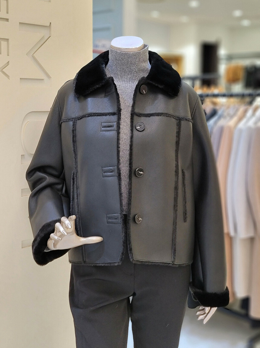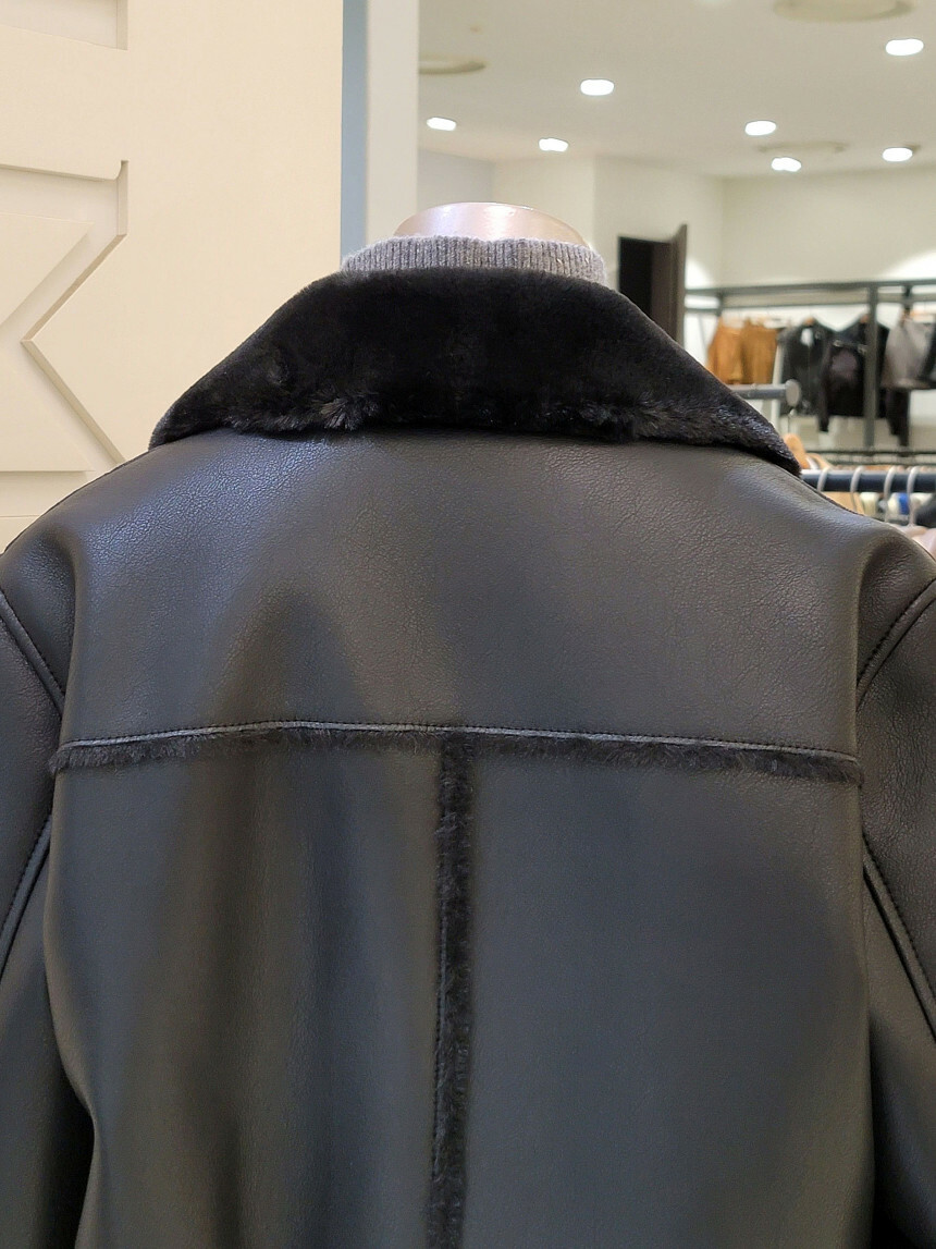 연출할 수 있는 레더 무스탕 재킷입니다.
