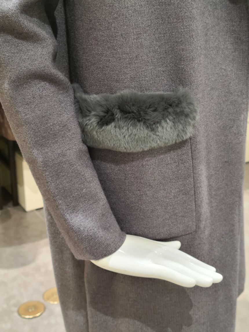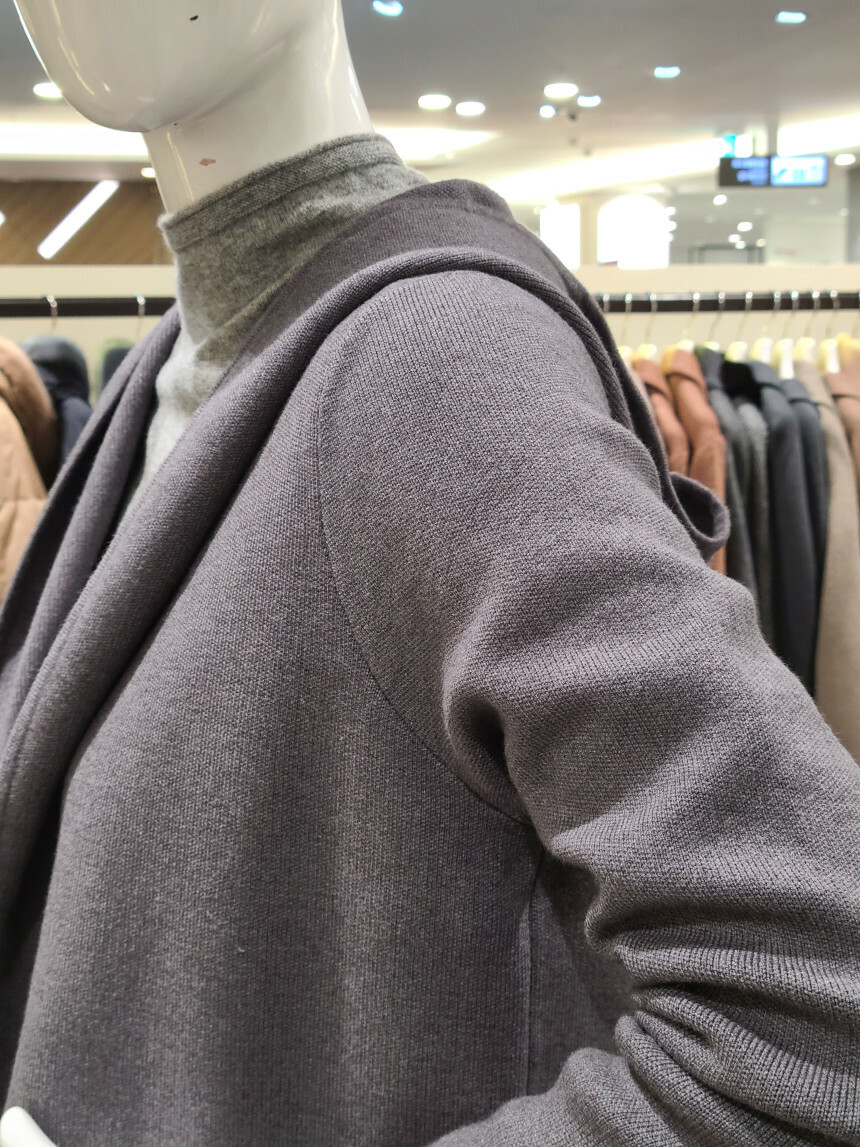 토끼털 주머니 포인트 후드 니트 롱 카디건입니다