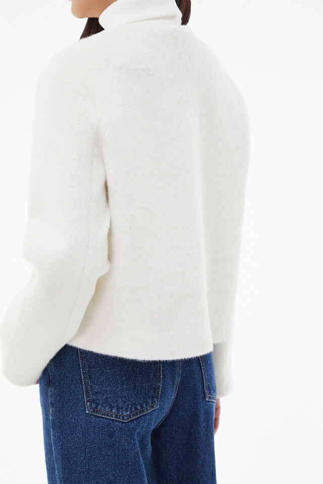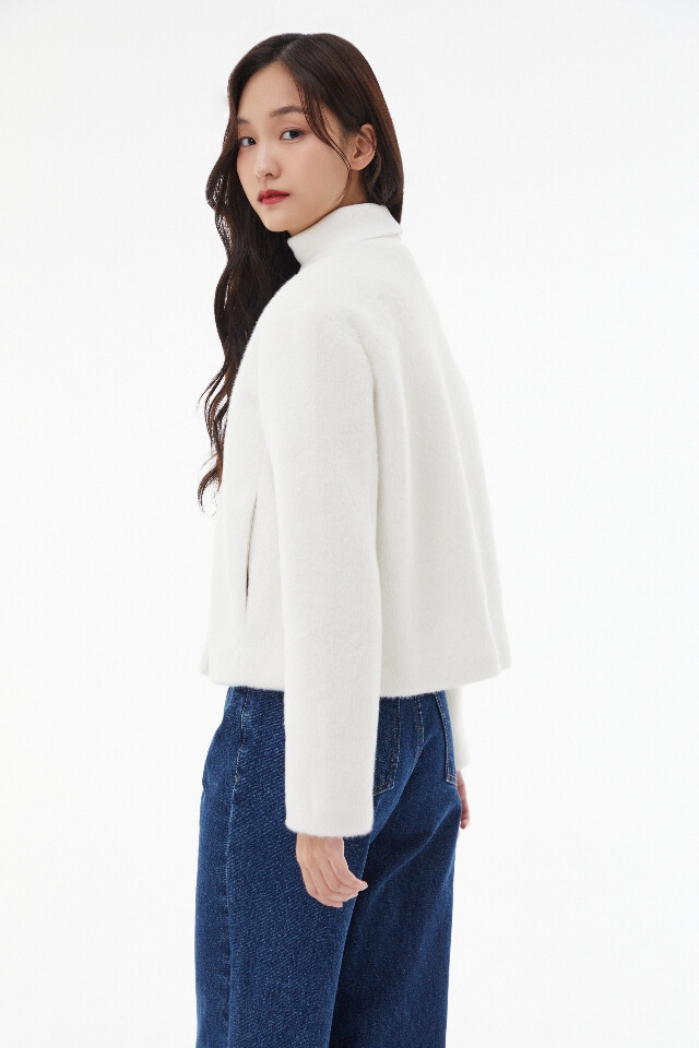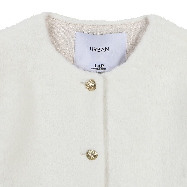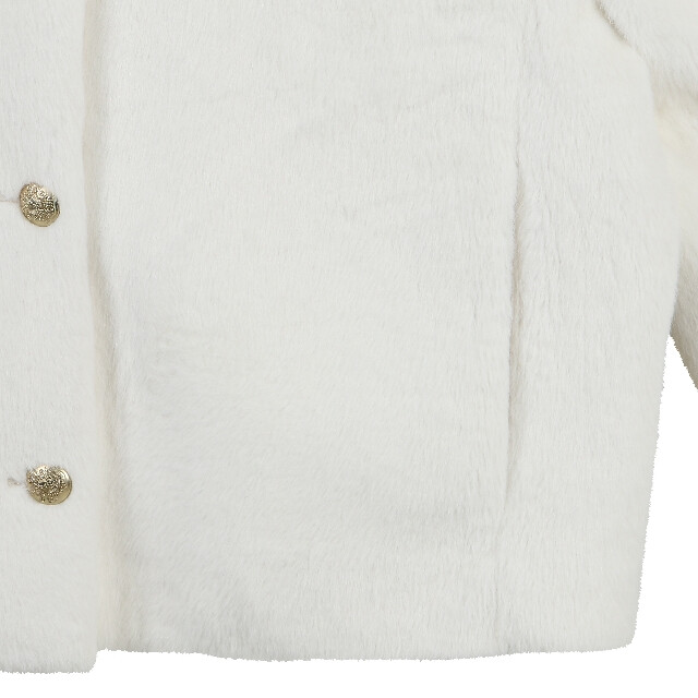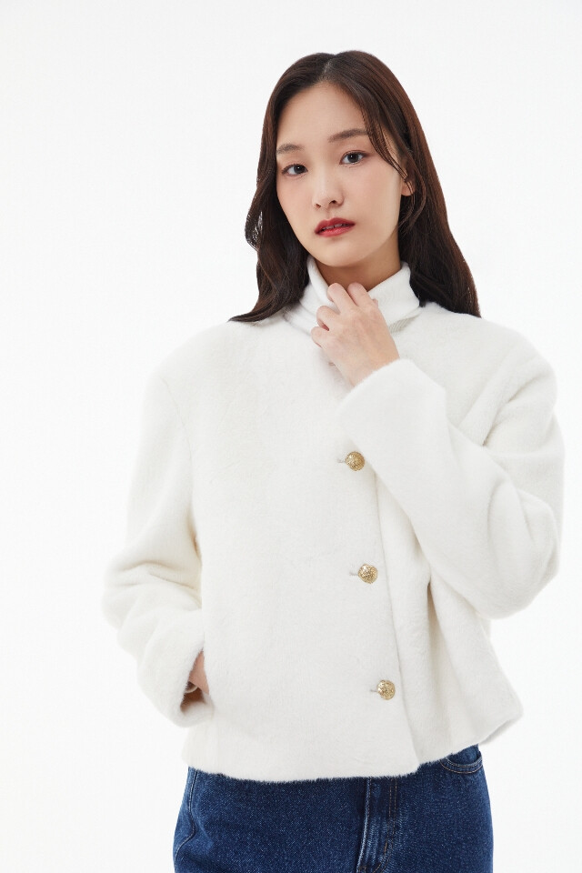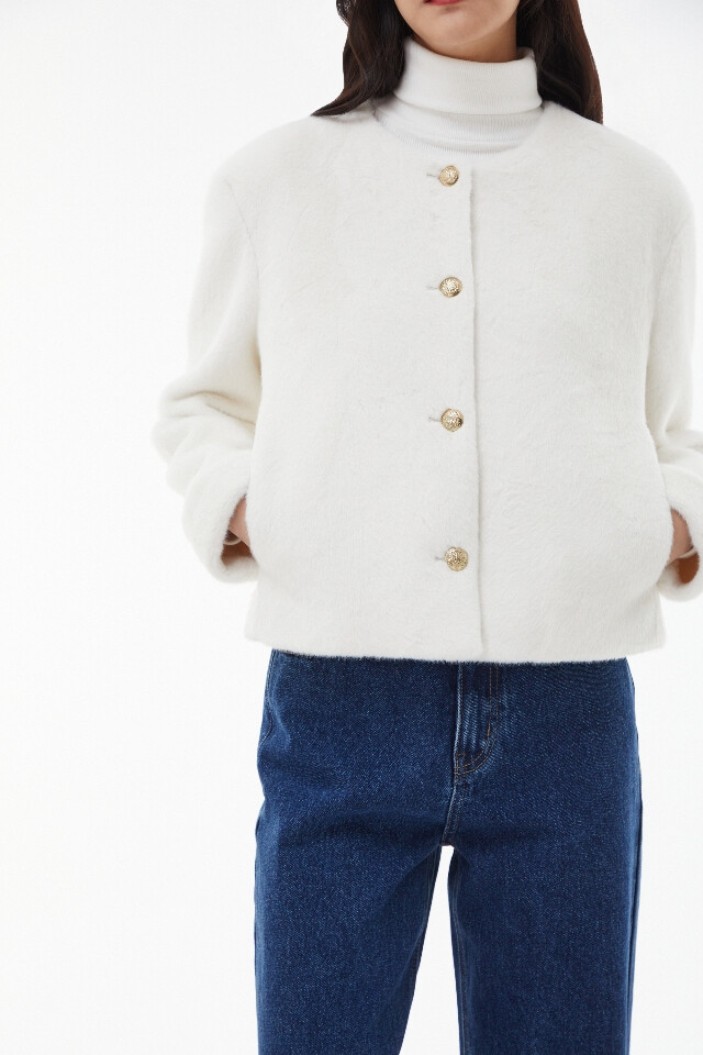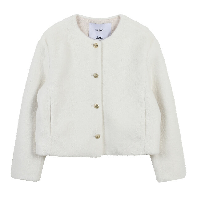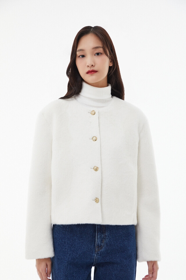 골드 버튼 라운드 넥 페이크 퍼 자켓 ~