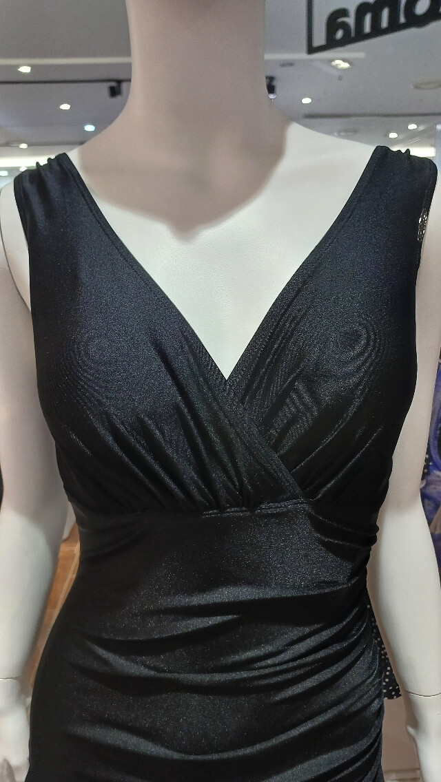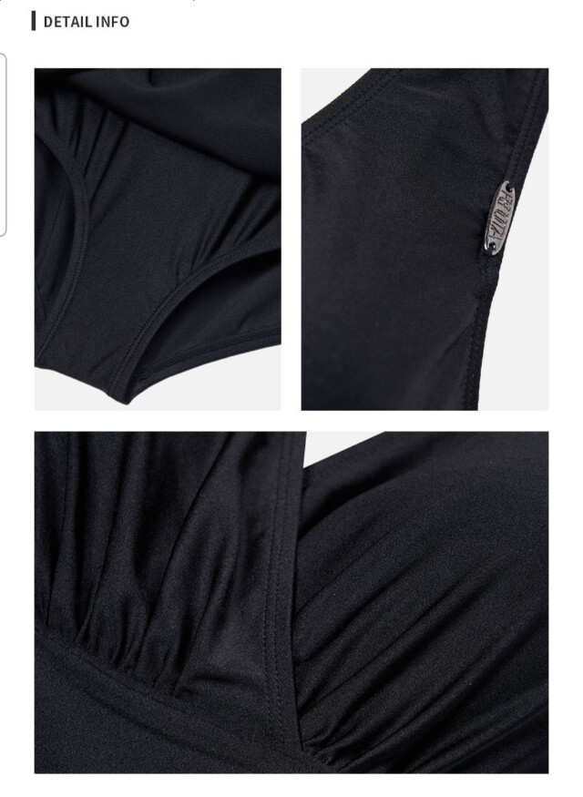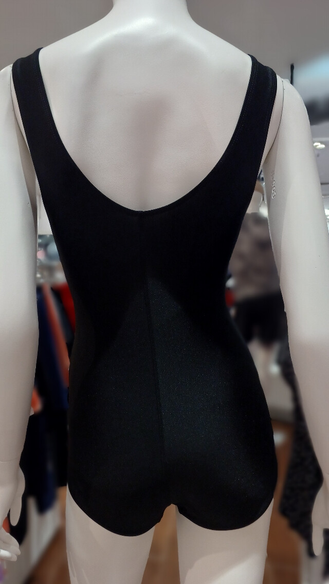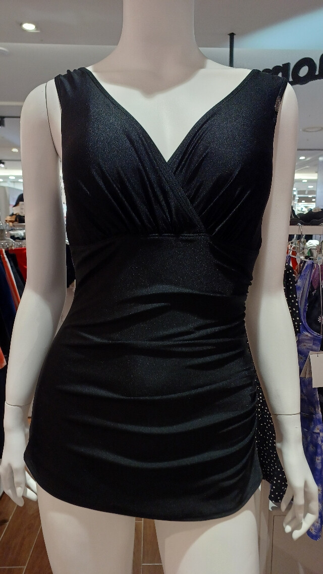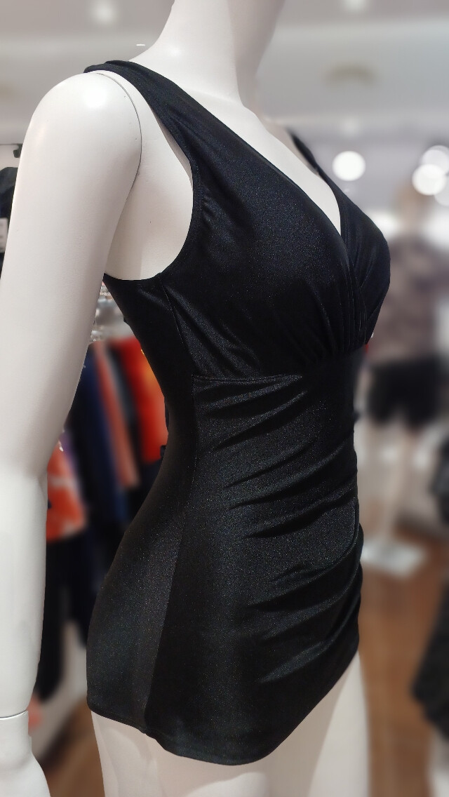 깔끔한 블랙 컬러에 파워넷 브라 내장형으로 편하게 착용 가능하며 몸판 셔링 스타일로 체형 커버에 도움이 되는 원피스 수영복입니다 .