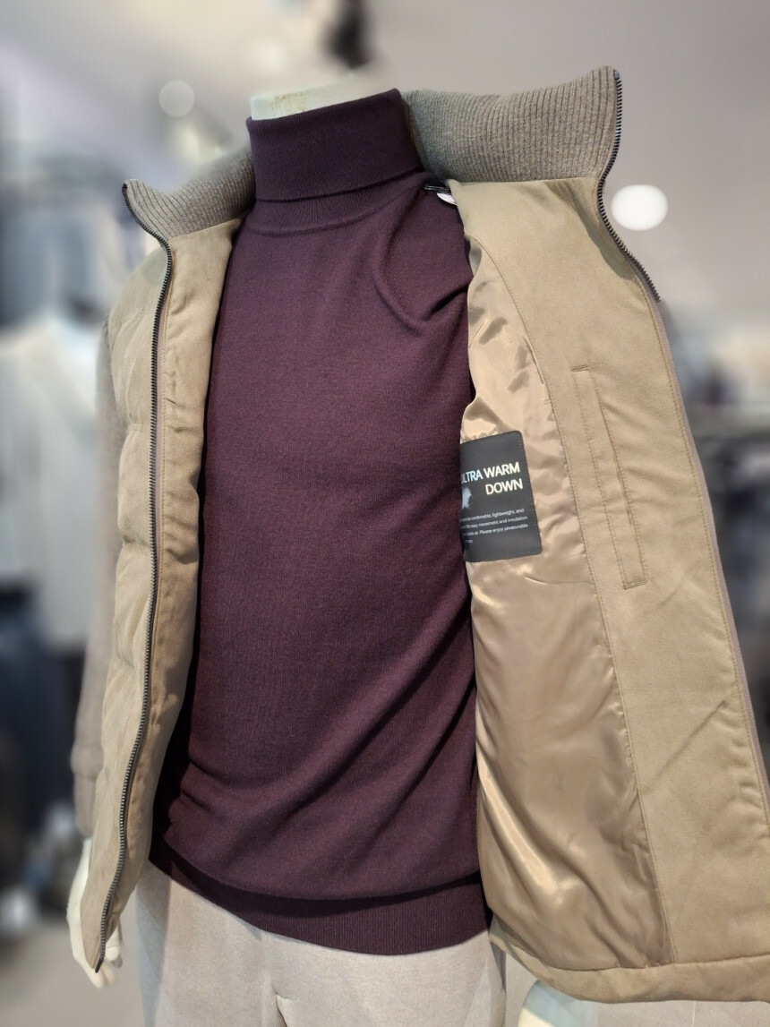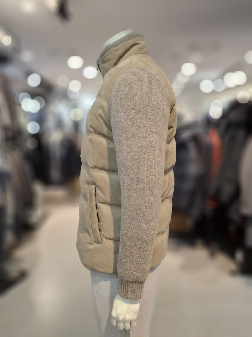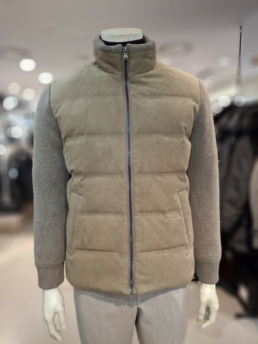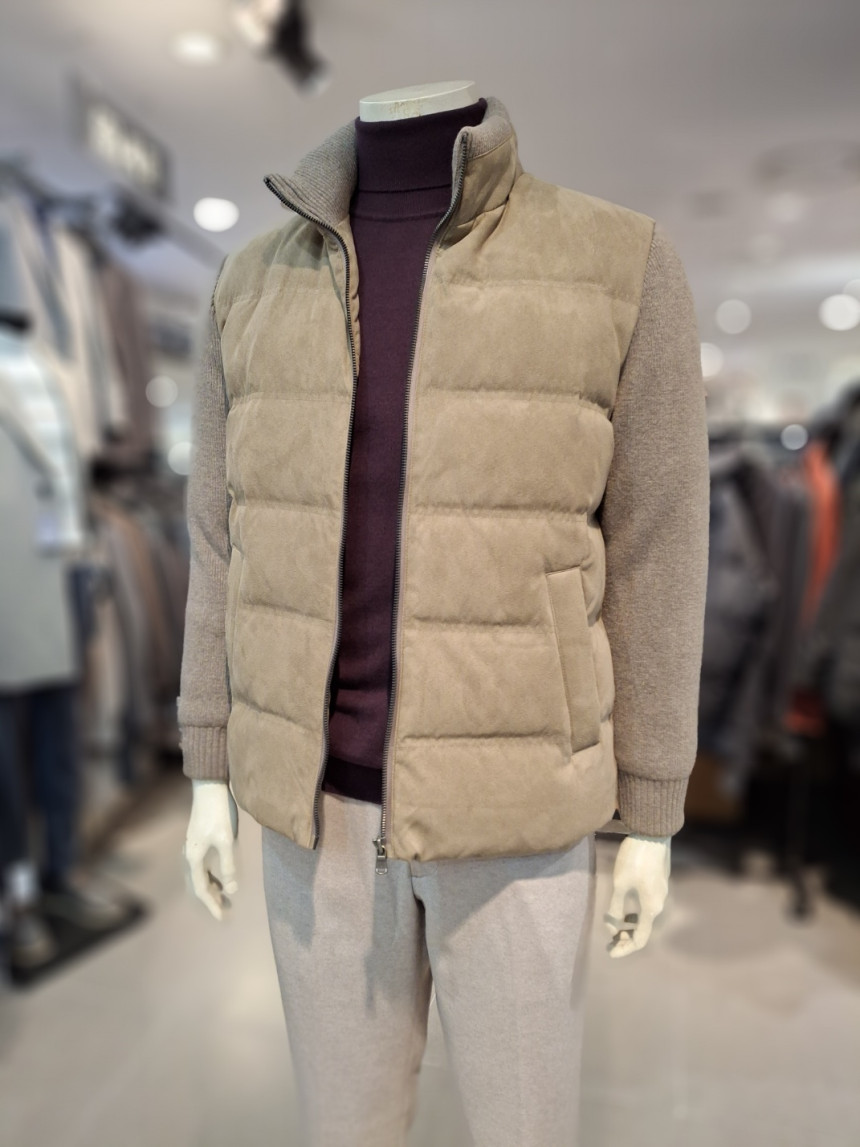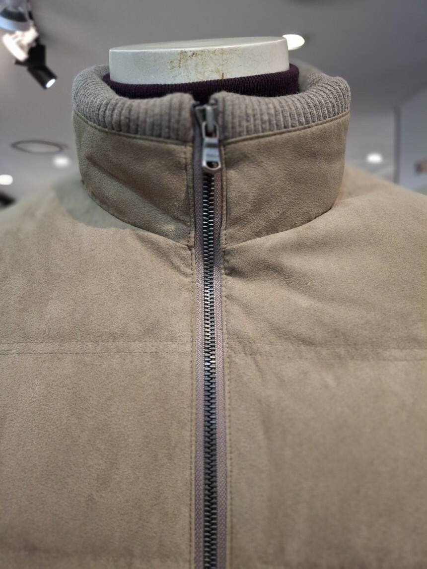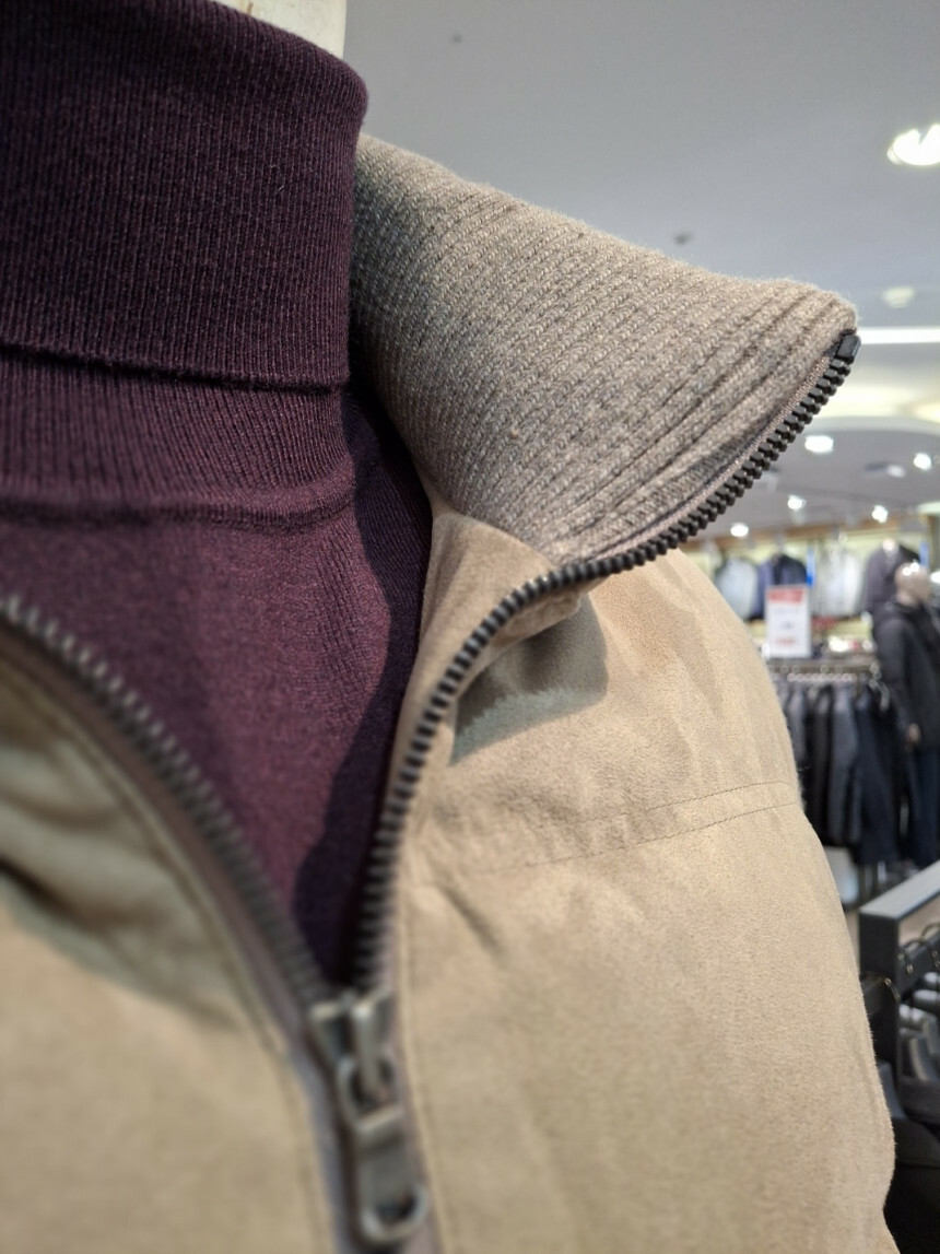 프리미엄 덕다운80;20의 세련된 디자인이 돋보이는 스웨이드질감의 점퍼