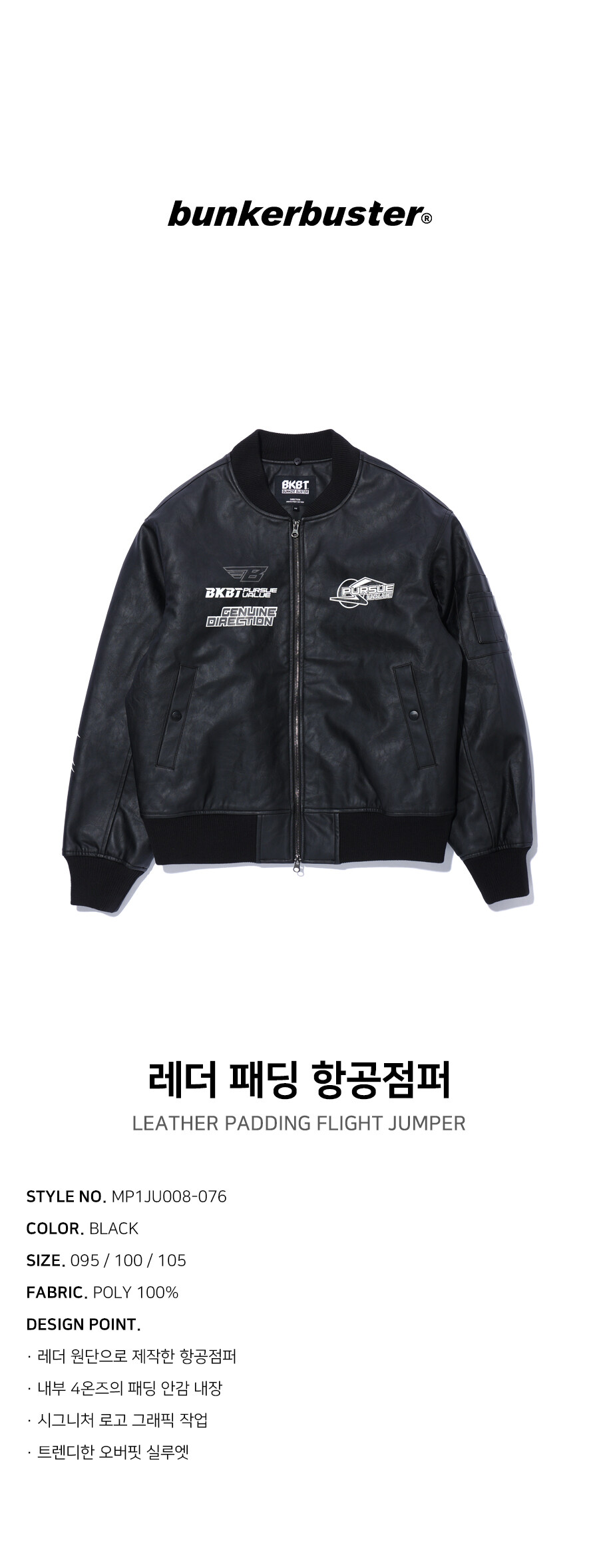 [벙커버스터] 레더 패딩 항공점퍼 BLACK (MP1JU008-076)
