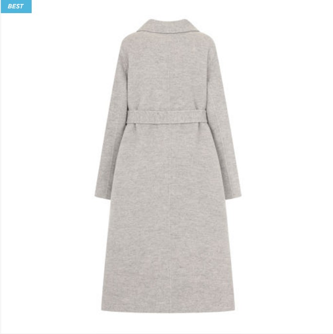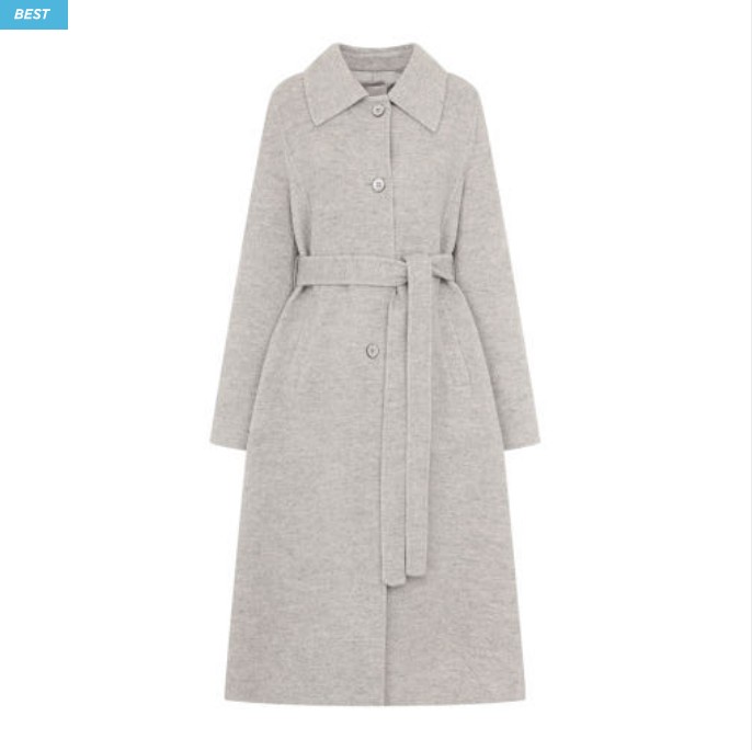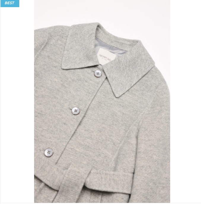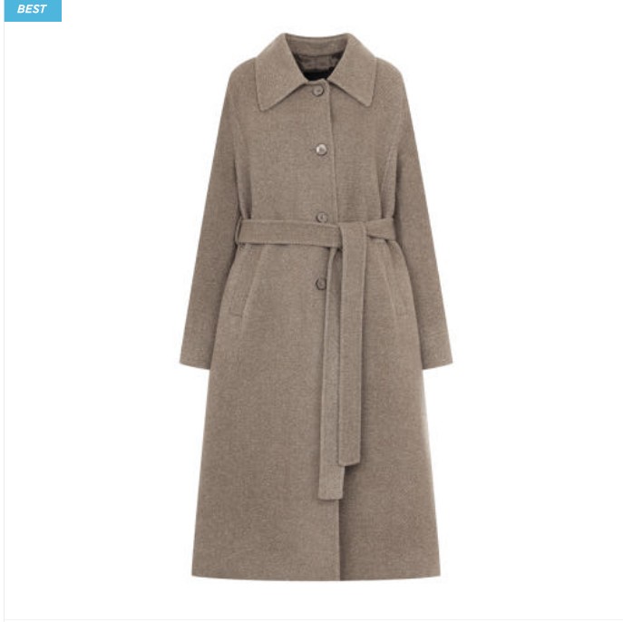 벨트 아래로 자연스럽게 퍼지는 실루엣이 고급스럽습니다.