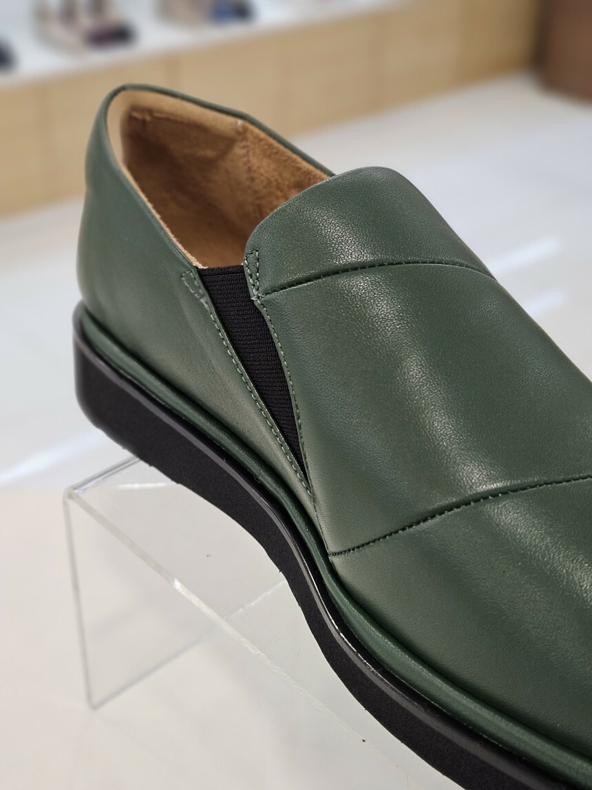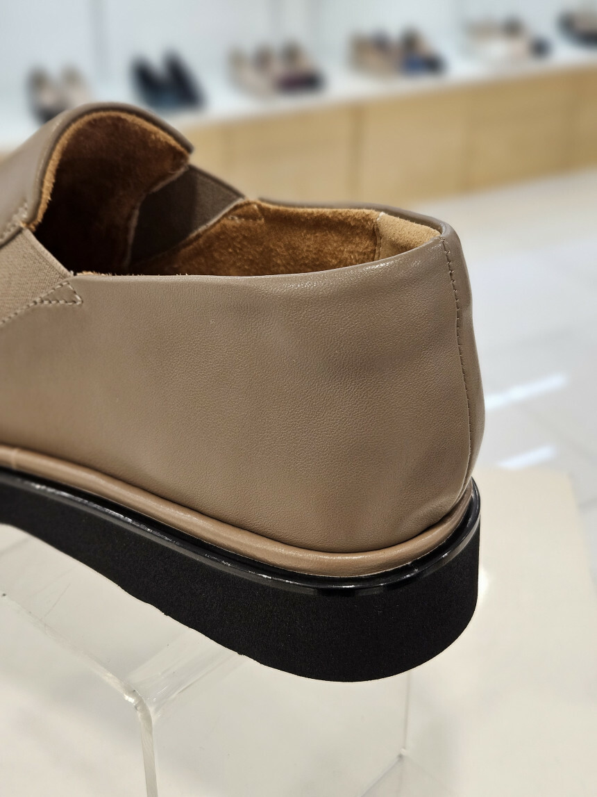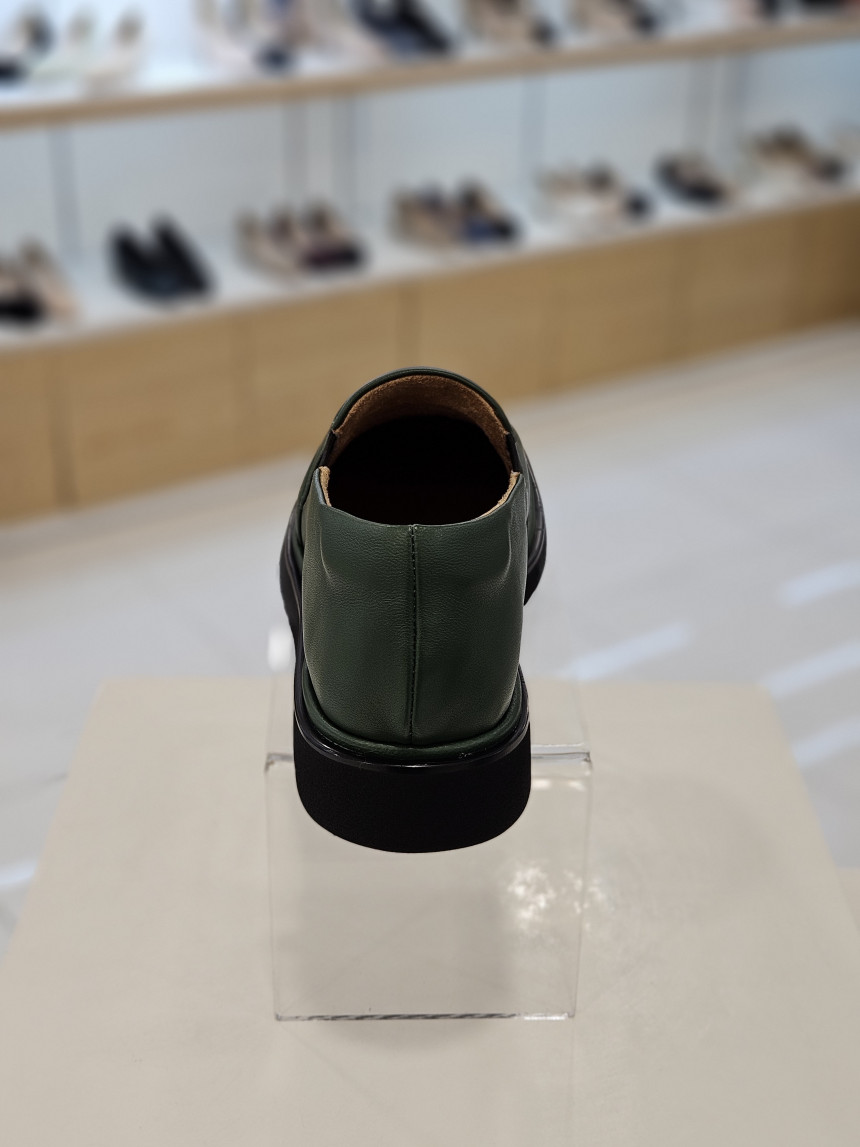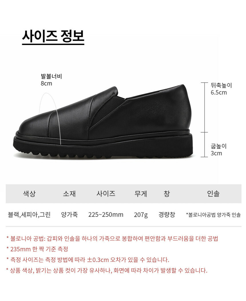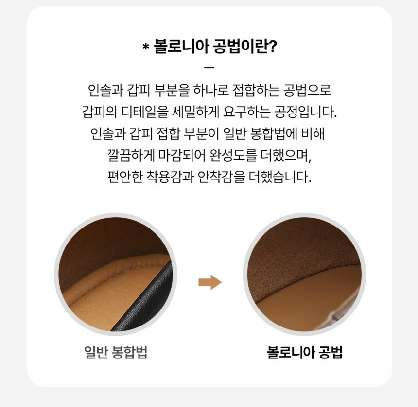 볼로니아공법 제작 양피가죽 까레로 착용감이 우수하고 뒤꿈치쿠션으로 피부 까짐방지 처리가 되어있음