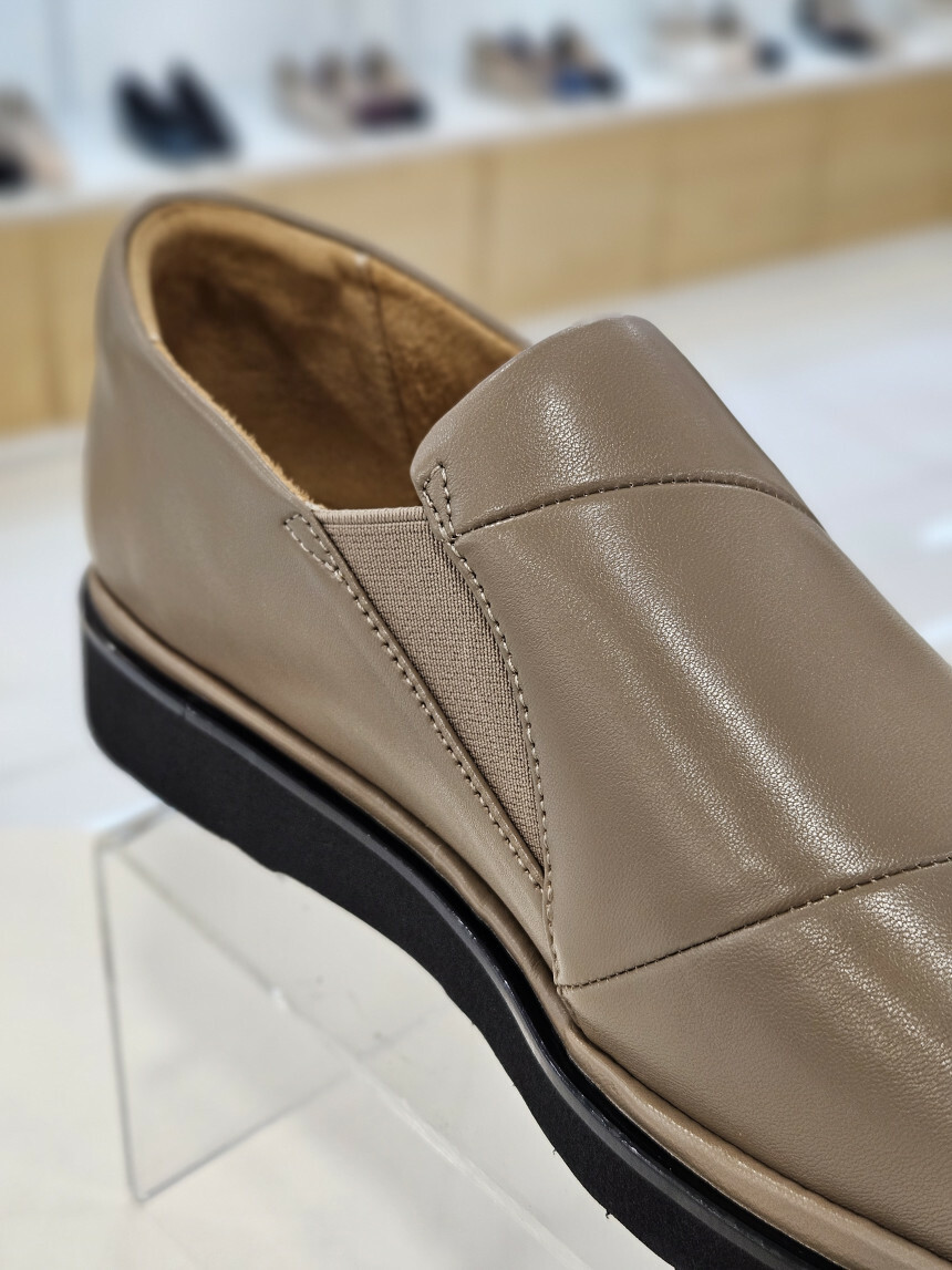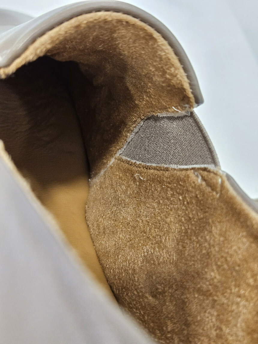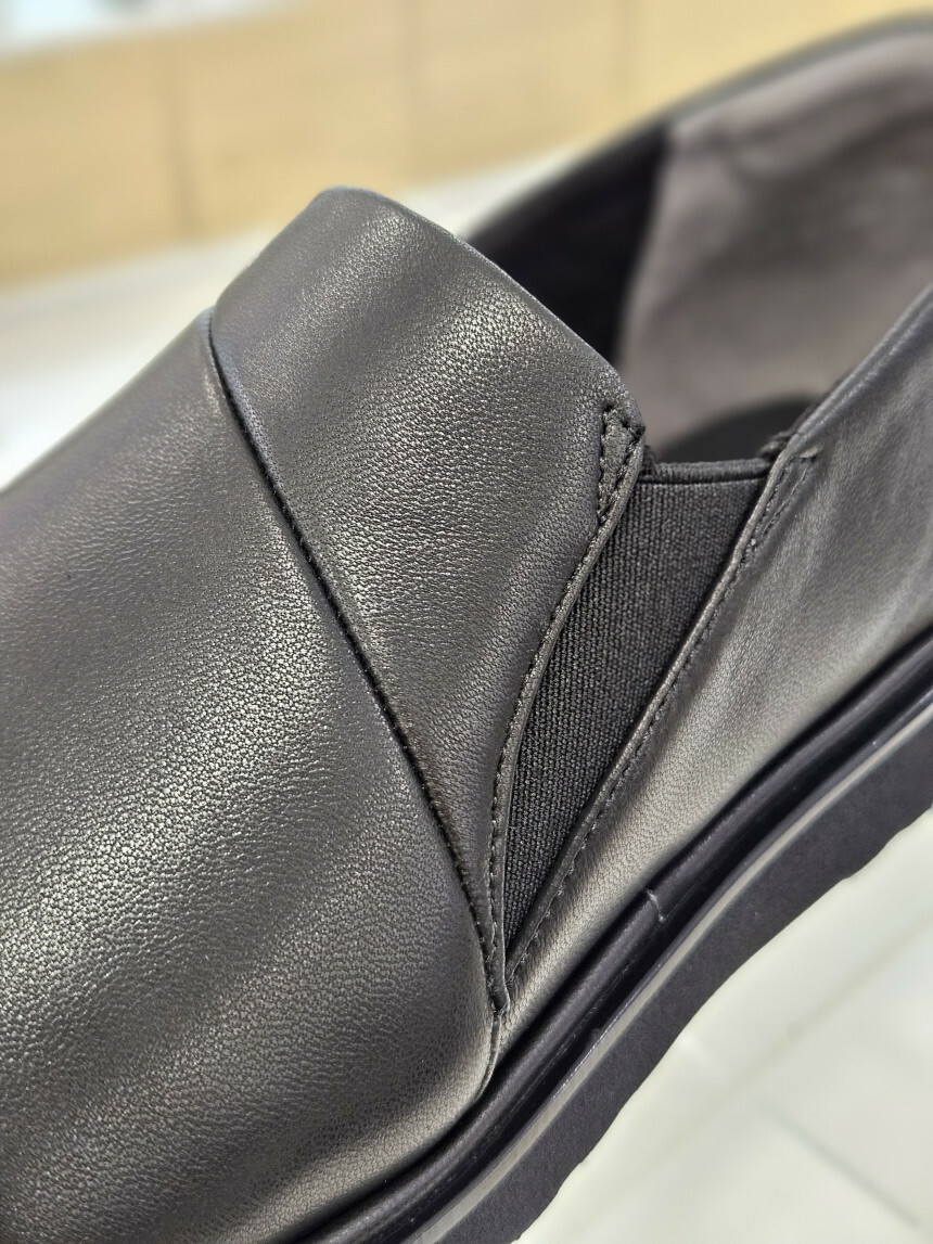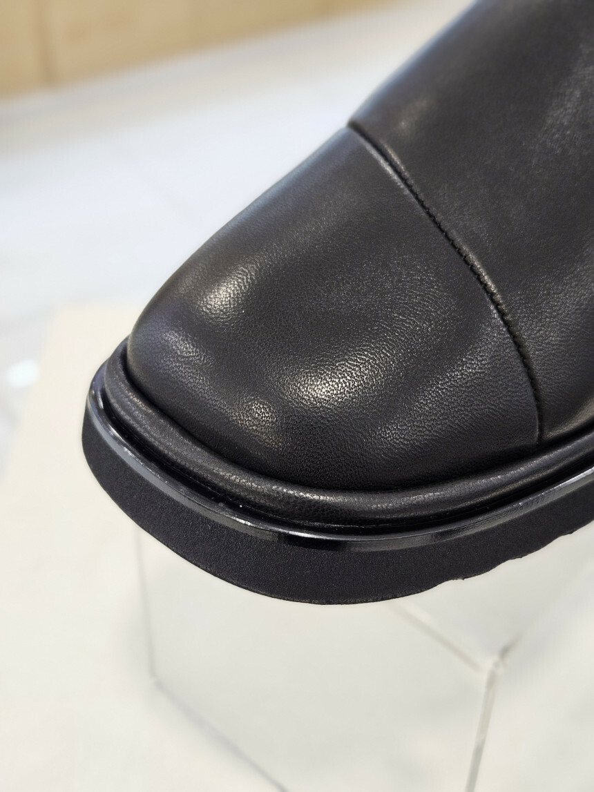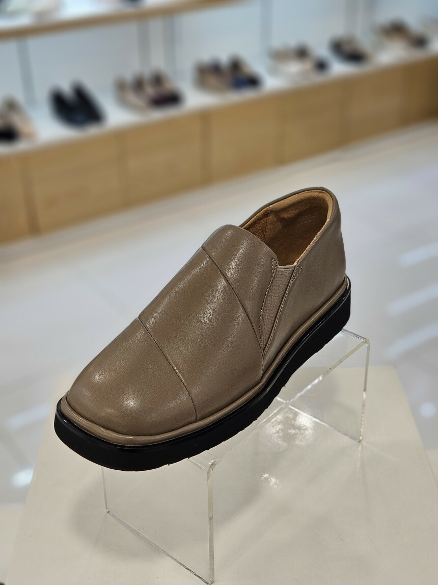 볼로니아공법 제작 양피가죽 까레로 착용감이 우수하고 뒤꿈치쿠션으로 피부 까짐방지 처리가 되어있음