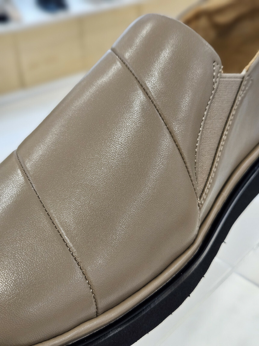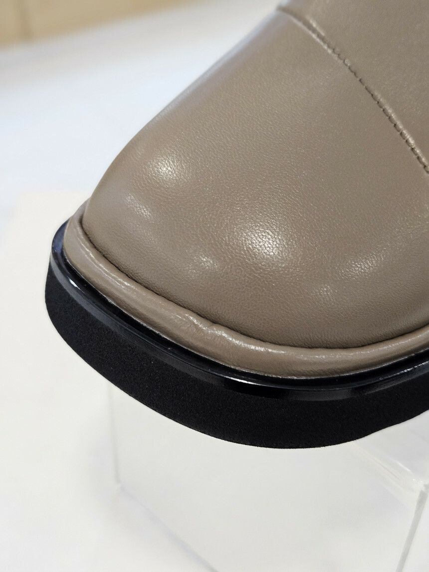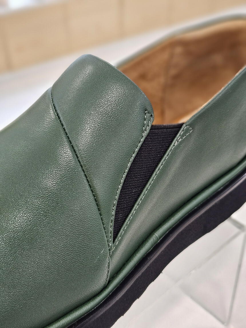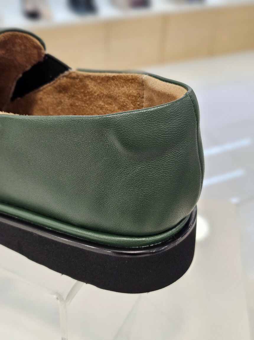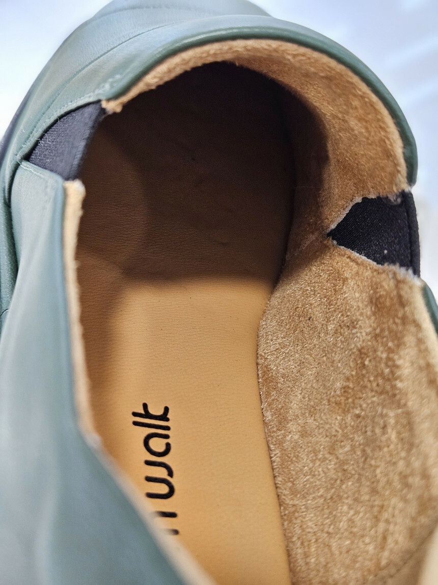 볼로니아공법 제작 양피가죽 까레로 착용감이 우수하고 뒤꿈치쿠션으로 피부 까짐방지 처리가 되어있음