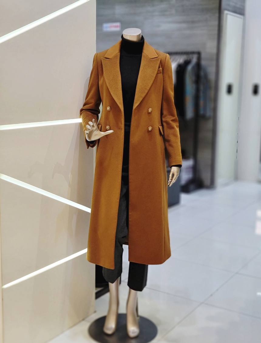 더블브레스트 디자인으로 클로징 실루엣이 멋스러우며