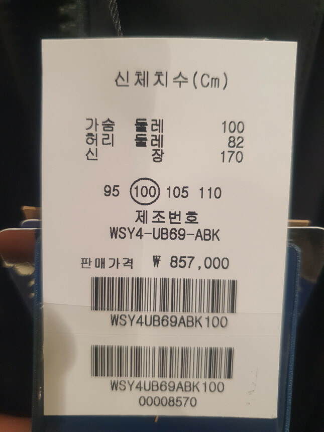 겉감(표면) : 나일론 89% , 폴리우레탄 11%