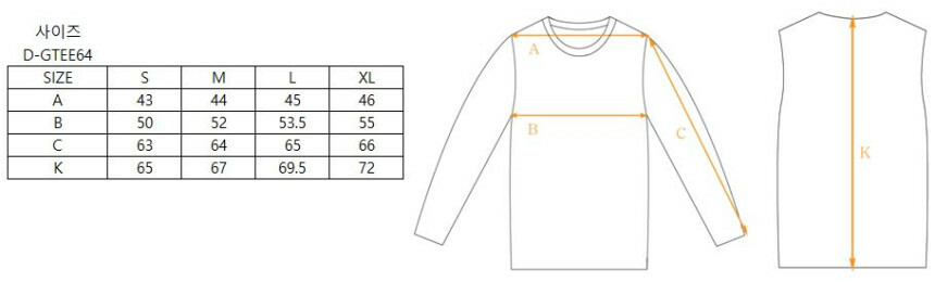 쌀쌀한 봄가을 기본티로 연출하거나 자켓,점퍼의 이너로 캐주얼하게 입기 좋습니다