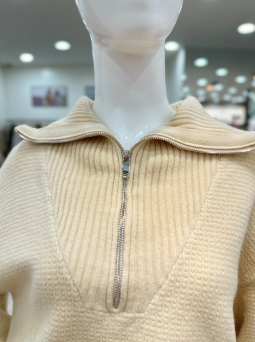 앞면 집업넥으로 소재감 캐시미어 혼방으로 부드럽고
