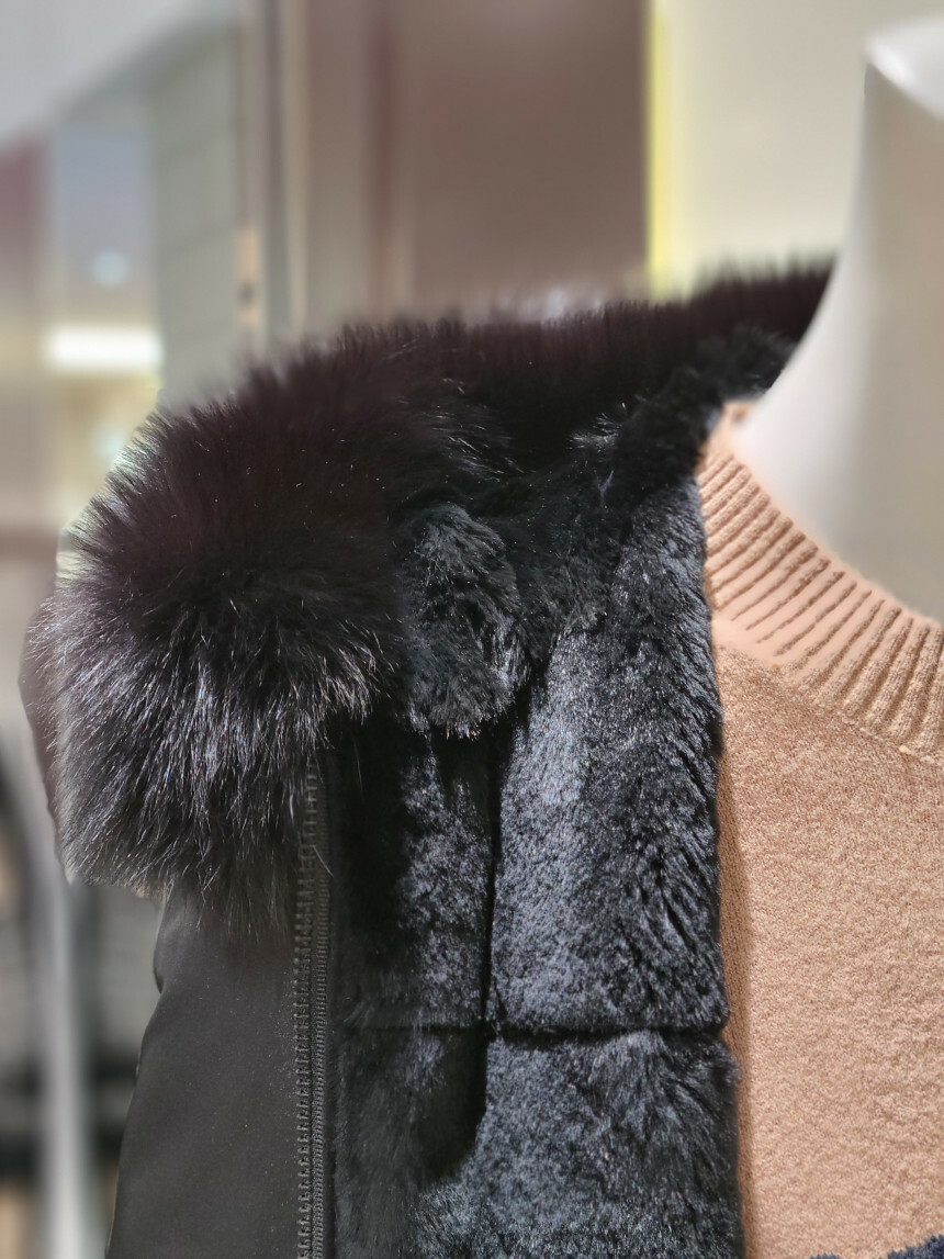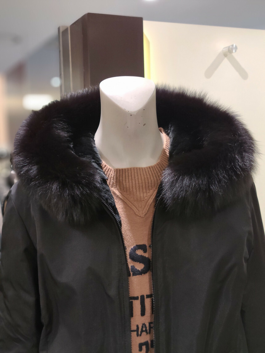 · 겉감 : 폴리에스테르 100%, 안감1: 토끼털 100%, 안감2: 폴리에스테르 100% 배색: 폭스 100%, 충전재: 폴리에스터 100%