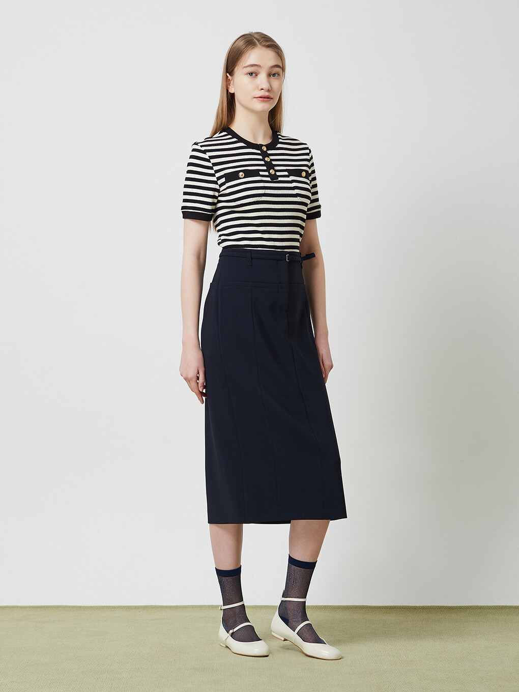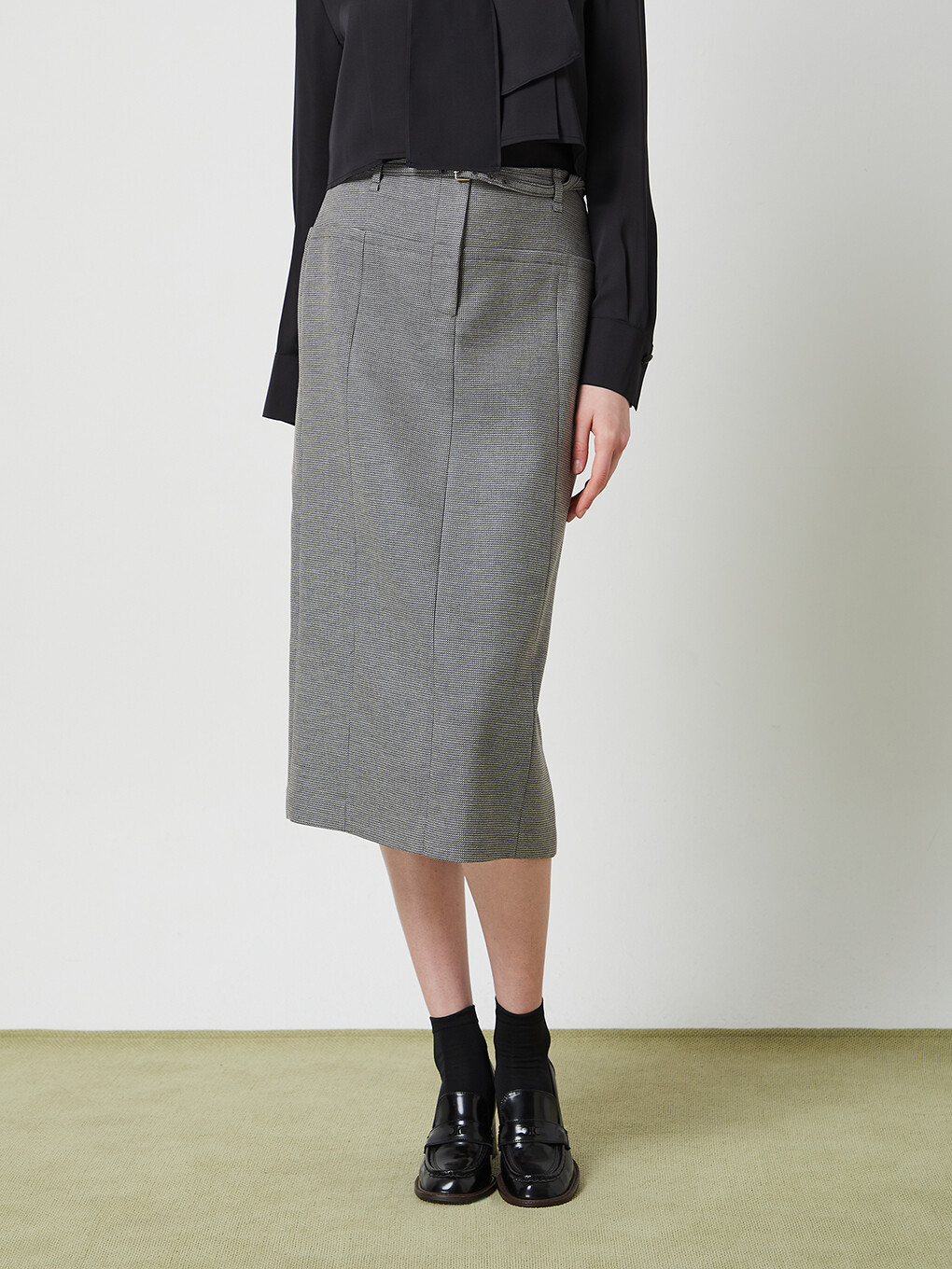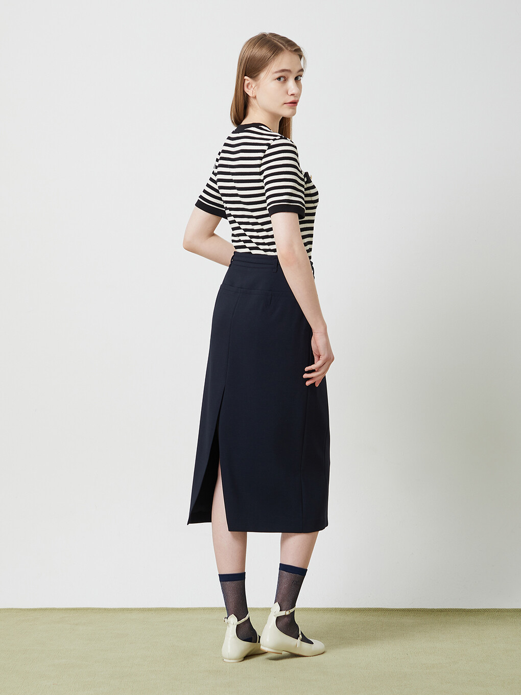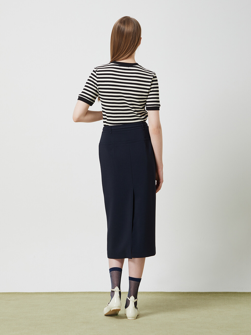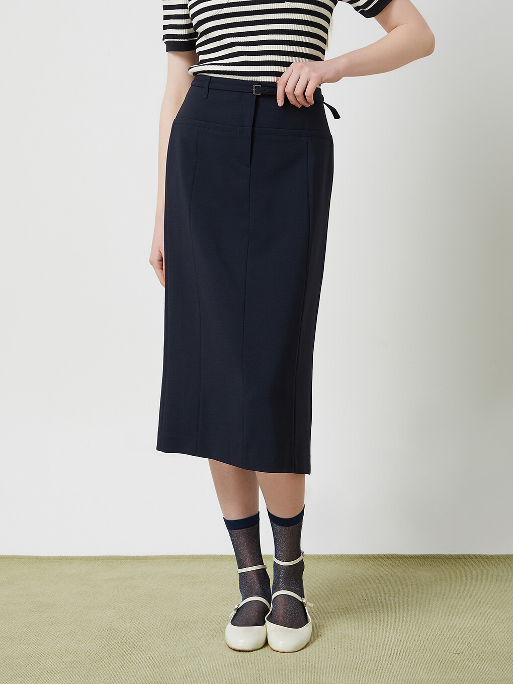 - 허리에 레이어드 된듯한 디테일을 준 H라인 스커트입니다.