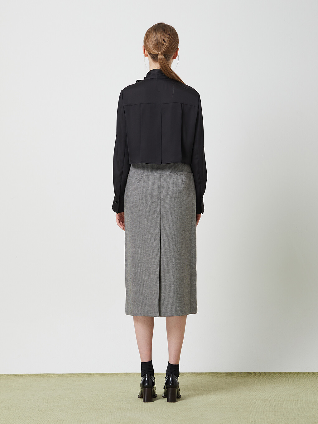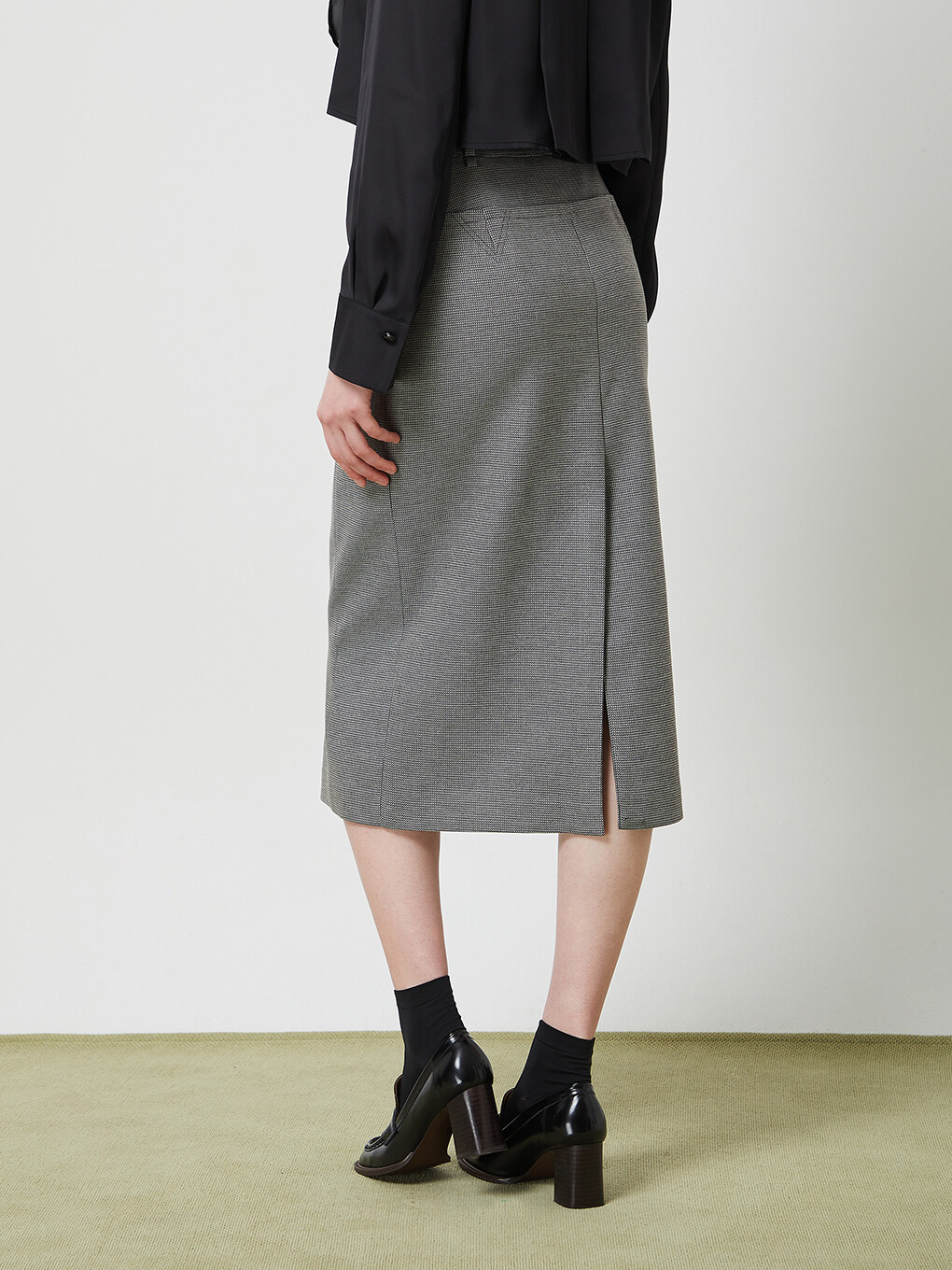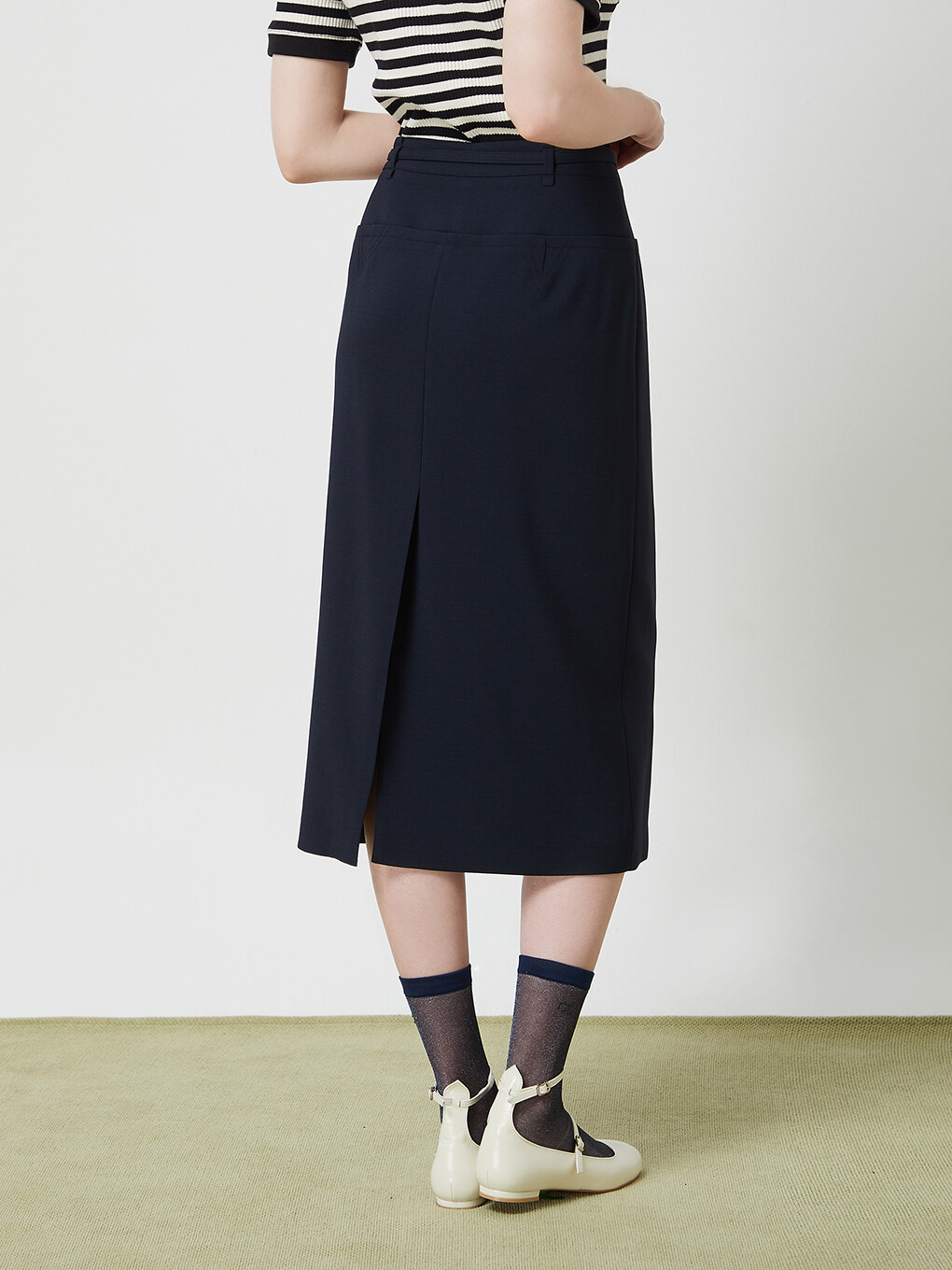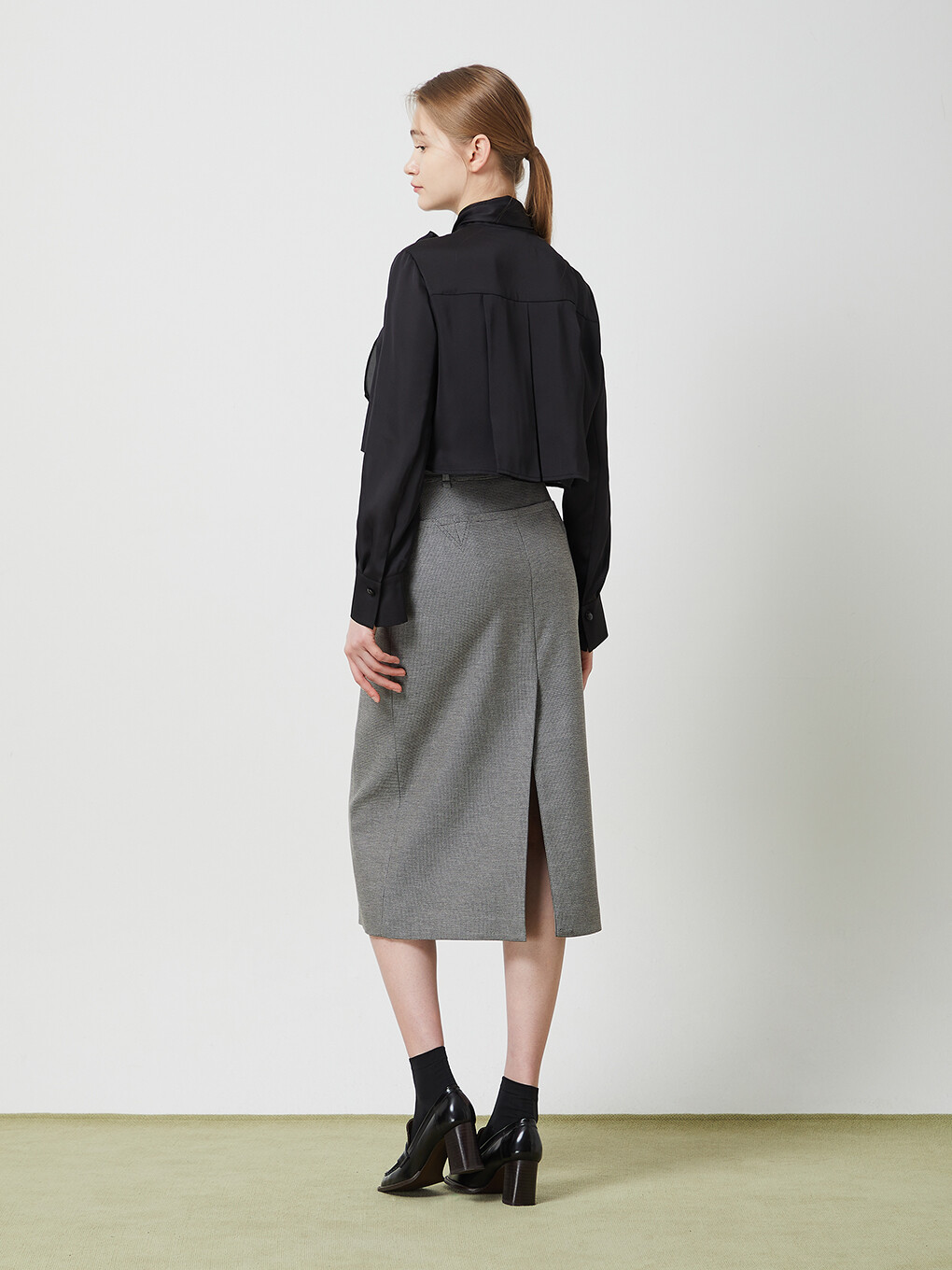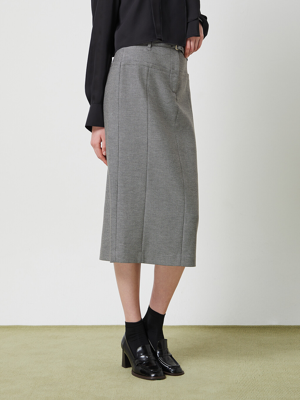- 허리에 레이어드 된듯한 디테일을 준 H라인 스커트입니다.