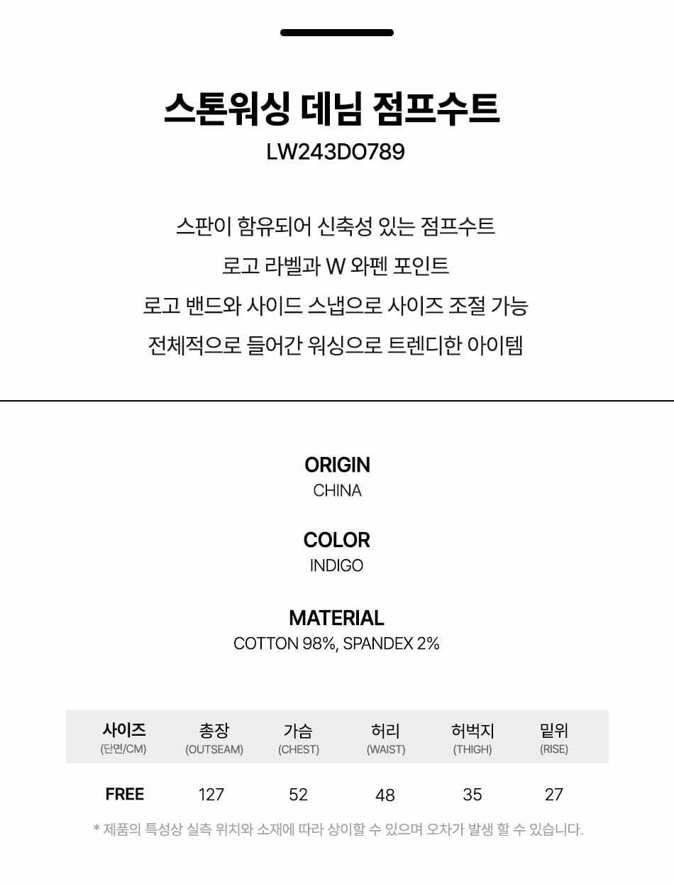 제품 설명스판이 함유되어 신축성 있는 점프수트