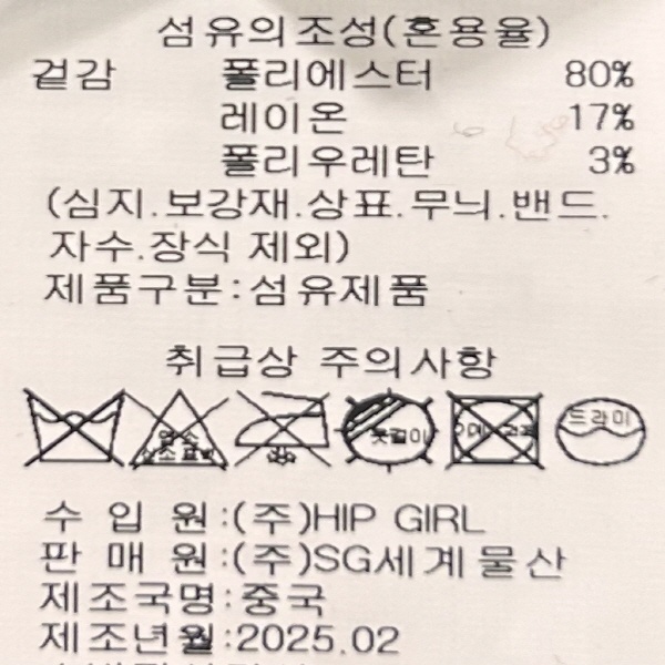 제품소재 : 겉감-폴리에스터80% 레이온17% 폴리우레탄3%