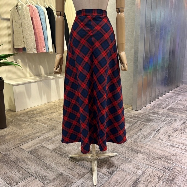 2025년 s/s 신상 플레어 체크 롱 스커트 입니다.