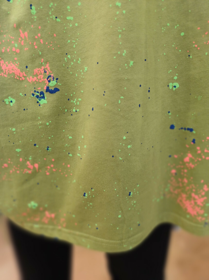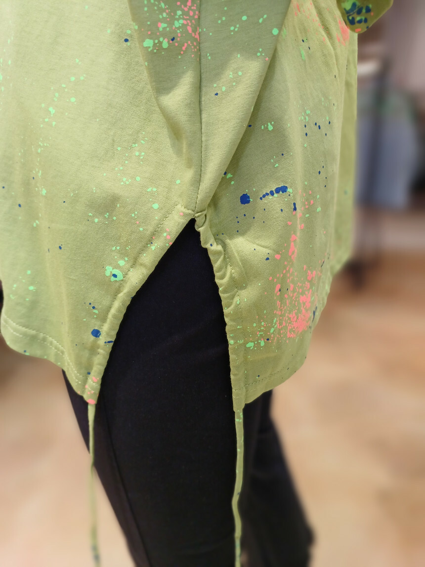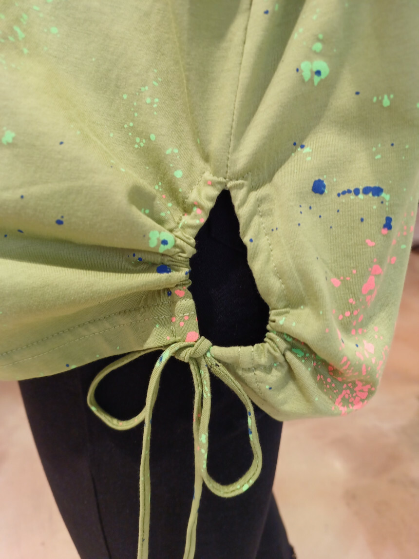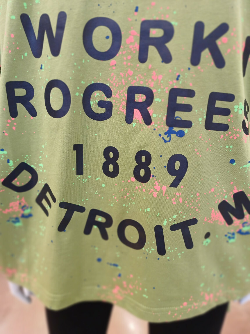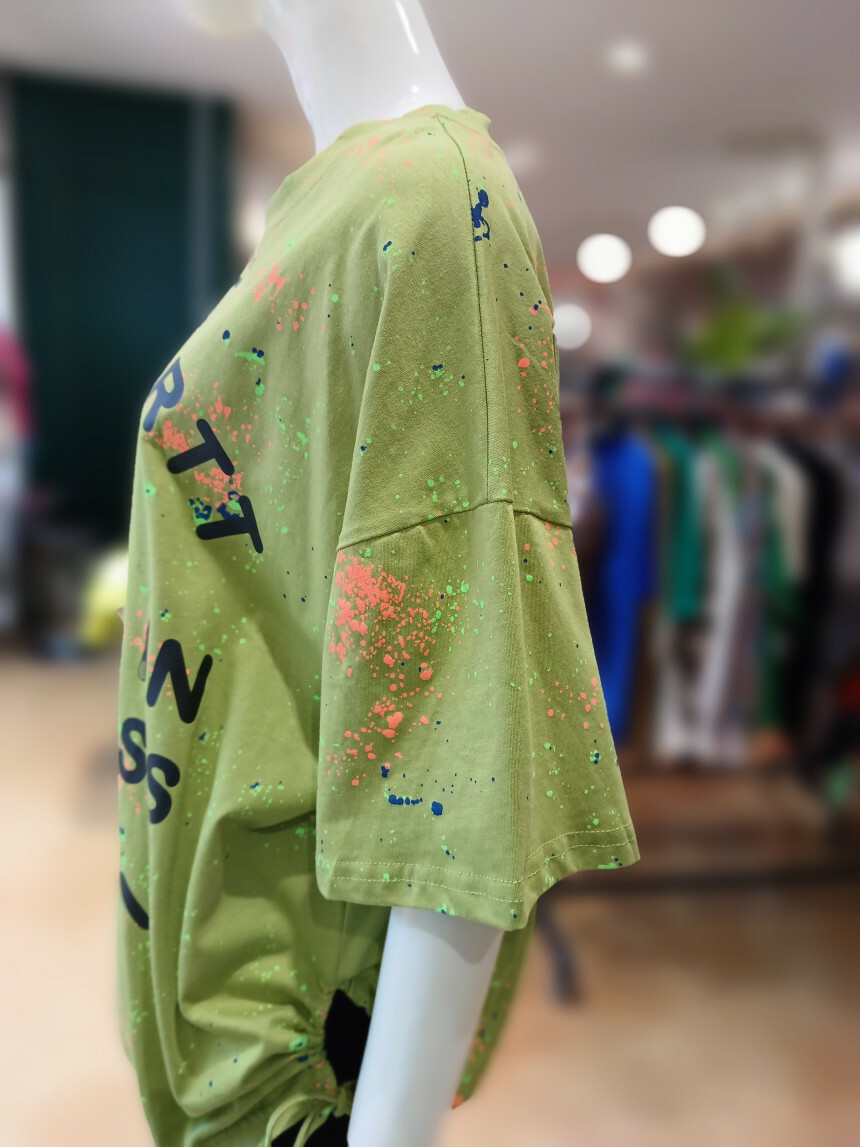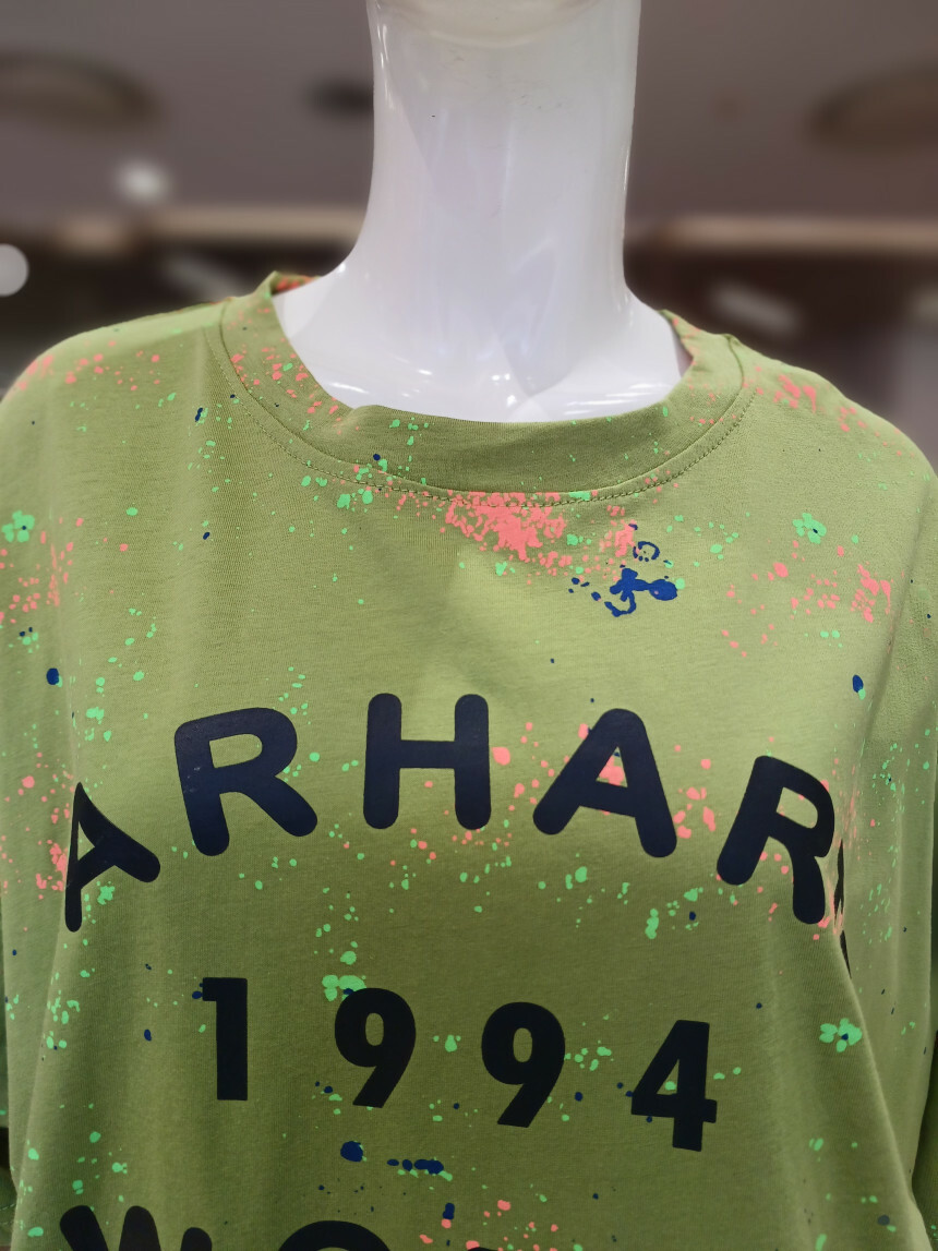 레터링 나염프린트 라운드넥 반팔 티셔츠입니다