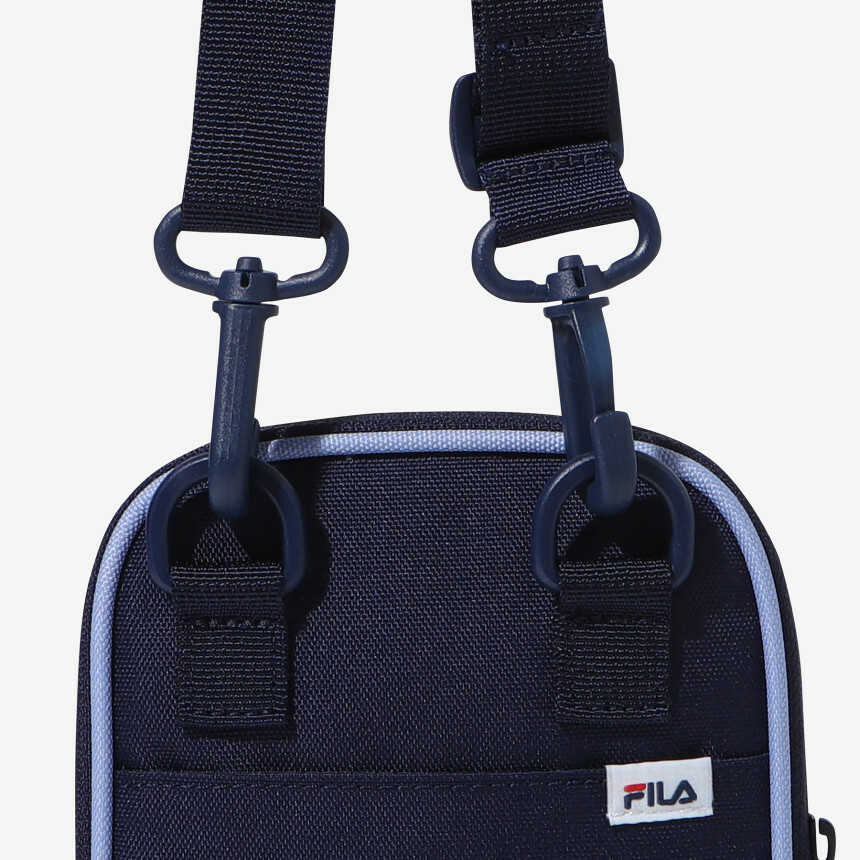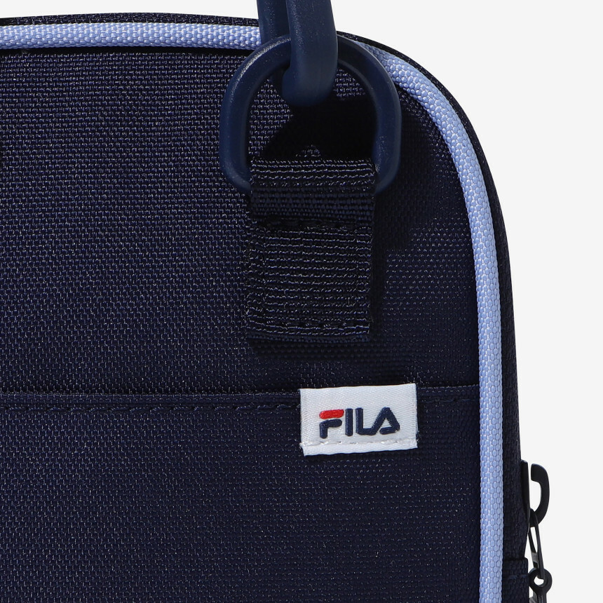 - 베이직한 쉐입에 포인트 FILA 실리콘 와펜이 특징인 패스포트백