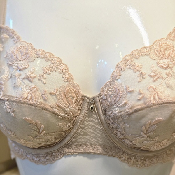 섬세하고 잔잔한 꽃자수가 아기자기한샬루트 엔젤망 브라와햄 팬티의 세트로 칼라 배합이 매력적이며 가슴을 안정적으로 감싸주는 쉐잎과 U자 날개로 편안하게 착용 가능한 제품