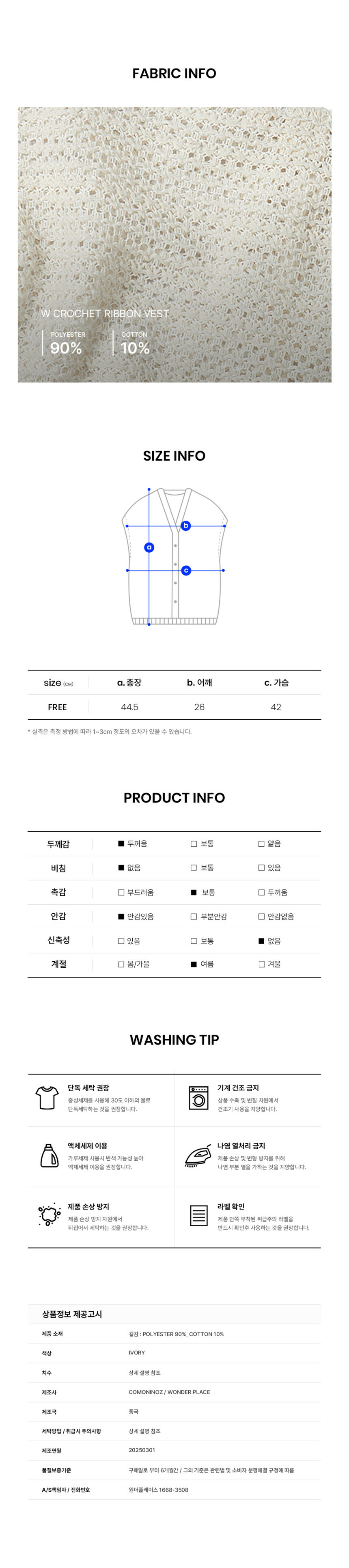 - 겉감 : 폴리에스테르 90%, 면 10%