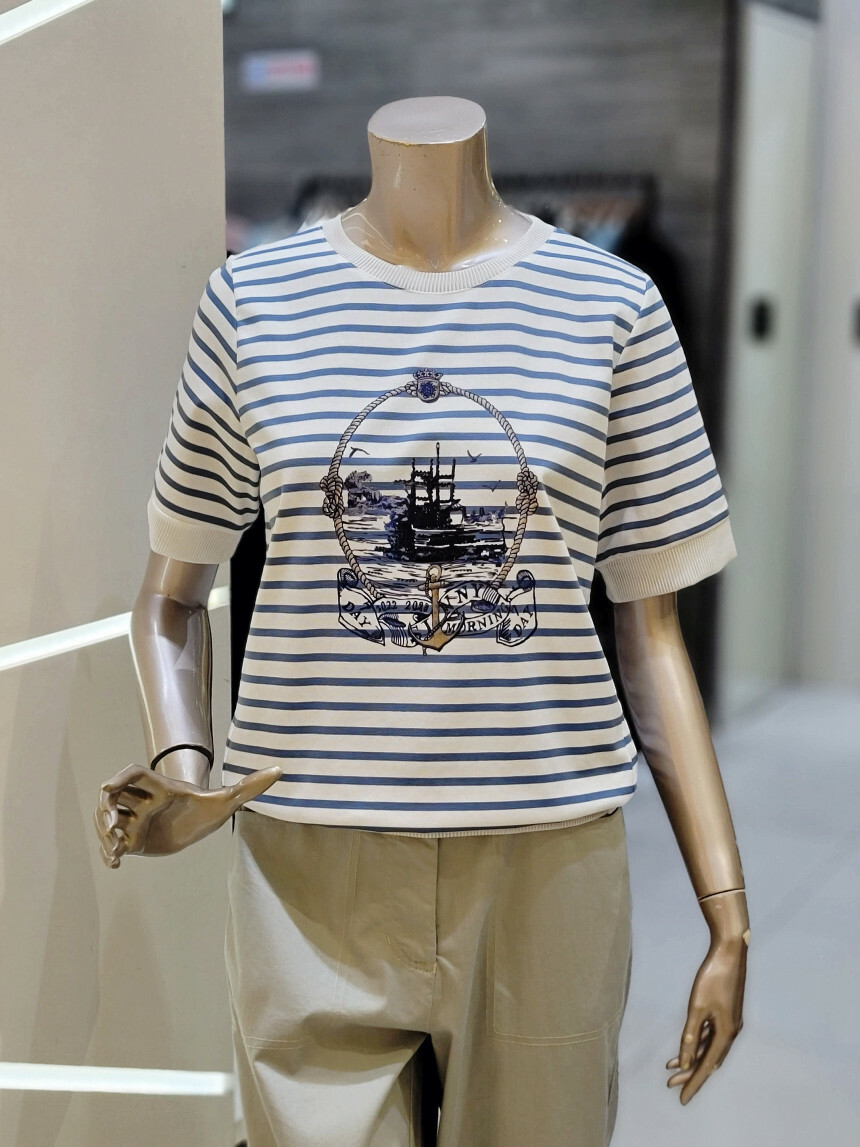스트라이프 패턴으로 경쾌한 무드를 선사하며