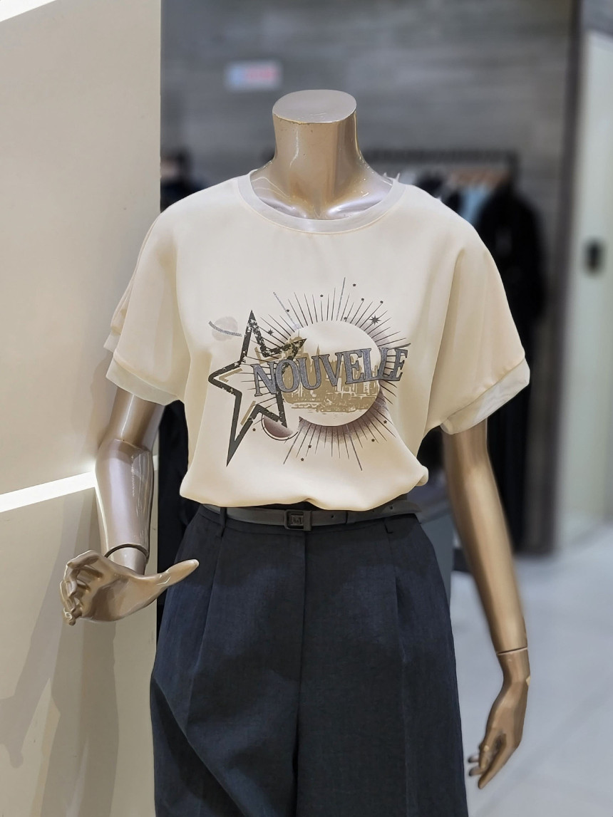베이직한 디자인에 프런트 투웨이 프린트 디테일이