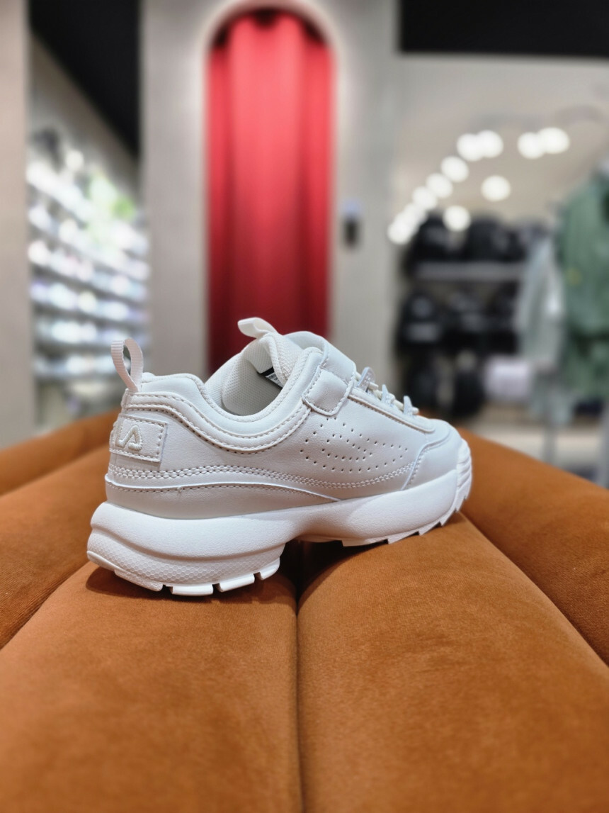 - 1998년 처음 탄생한 디스럽터는 아이코닉한 톱니 모양의 오버솔과 측면의 플래그 패턴으로 휠라만의 헤리티지를 표현