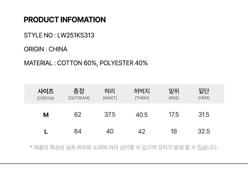 제품 설명면과 폴리 소재로 이루어진 하프 팬츠