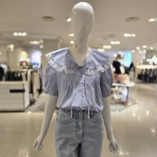 레이스 넥 프릴 리본 블라우스(OW5MB553)?넥프릴이 러블리 하며 다양한 하의와 함께 코디 하기 좋은 블라우스 입니다