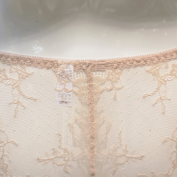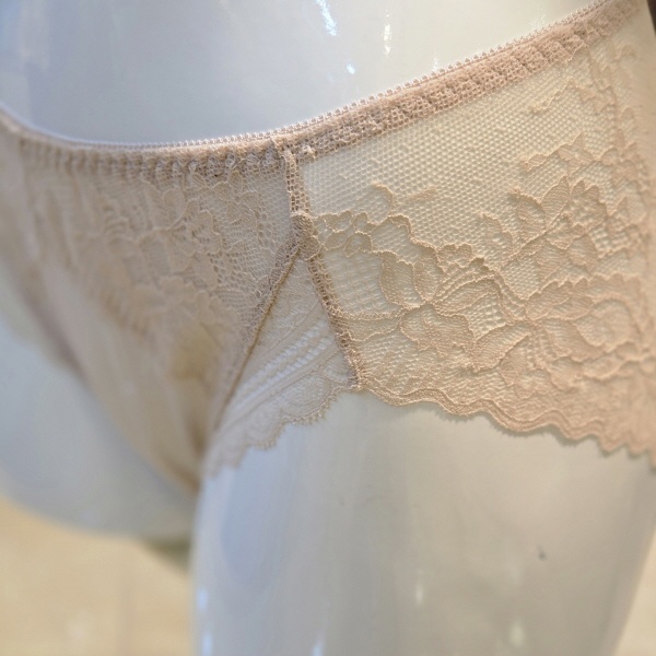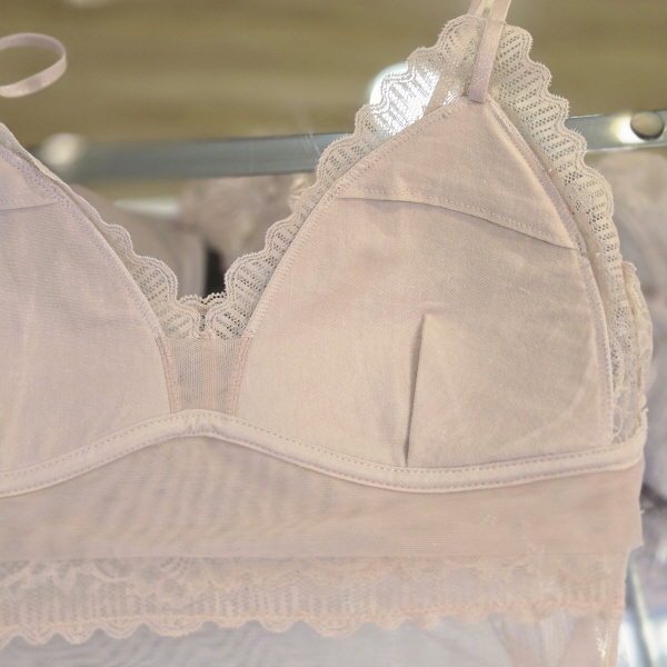 레이스가 세련된 스트랍 컵란쥬와 올레이스 팬티의 세트로 삼각몰드를 사용하여 가슴을 자연스럽게 감싸주며 컵부분에는 전체 레이스를 사용하고 몸판에는 투명한 망을 사용하여 시스루한 매력이 돋보이는 제품