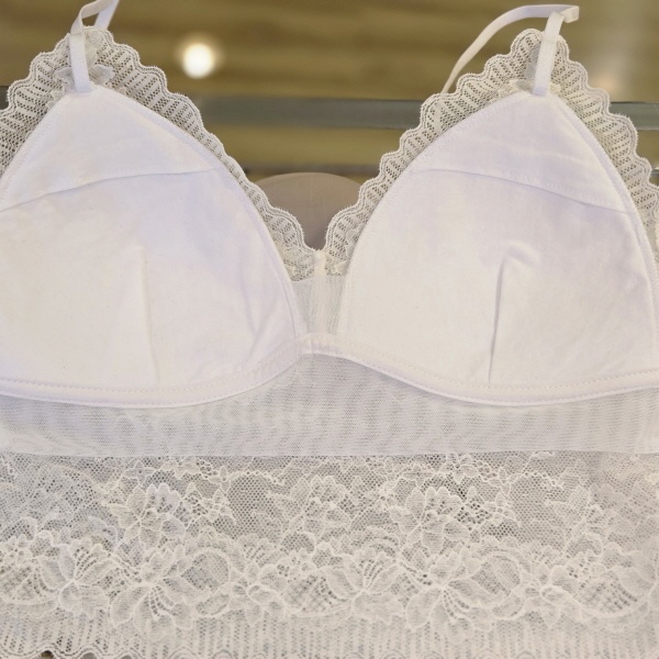 레이스가 세련된 스트랍?브라렛과올레이스 팬티의 세트로 삼각몰드를 사용하여 가슴을 자연스럽게 감싸주며 컵부분에는 전체 레이스를 사용하고 가슴아래 넓게 투명한 망을 사용하여 시스루한 매력이 돋보이는 제품
