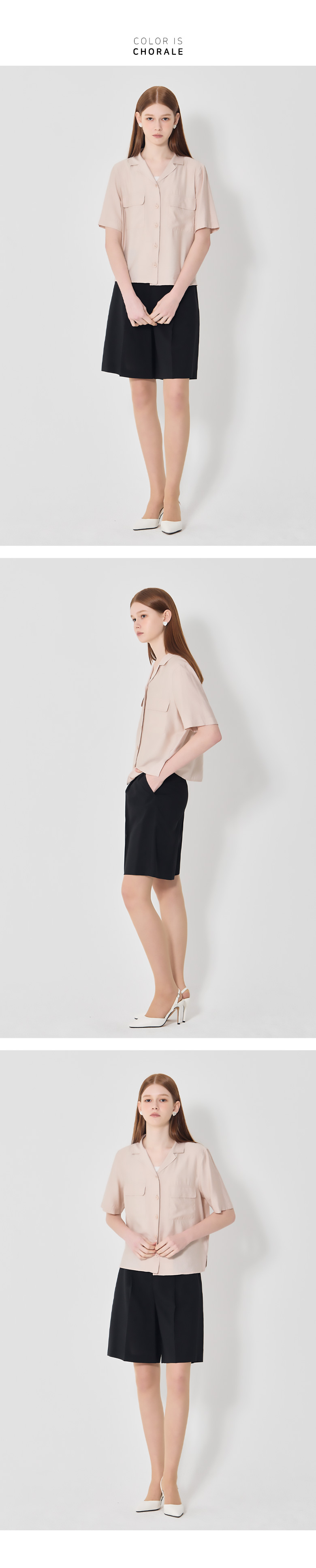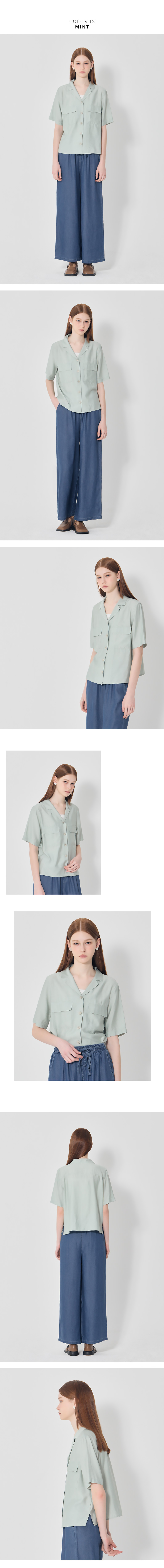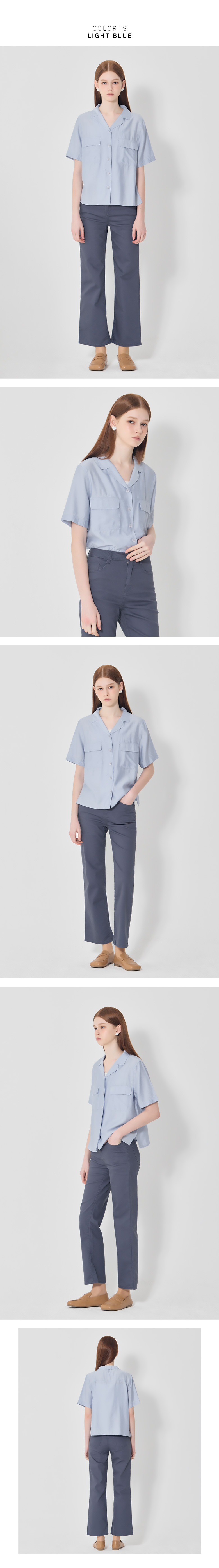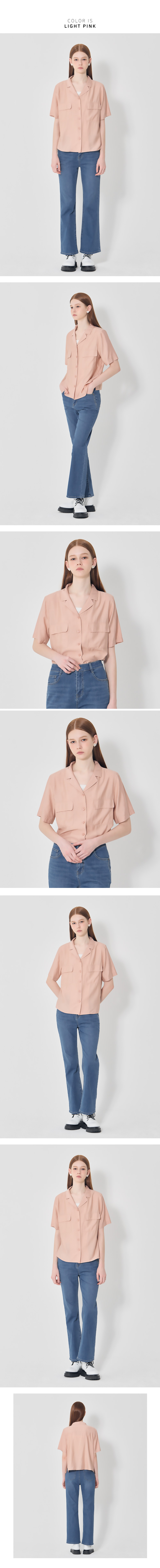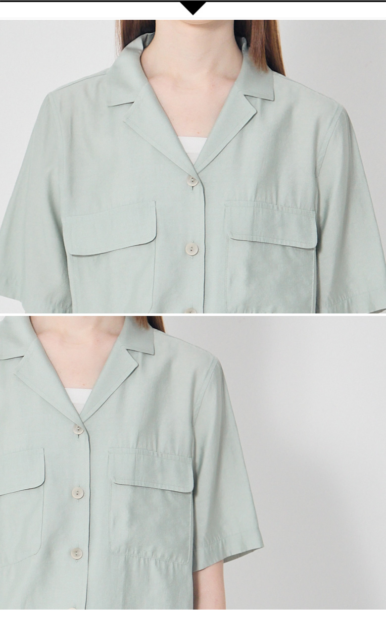 자연스럽게 칼라가 벌어지는 오픈 칼라 형태의 반팔 셔츠입니다.