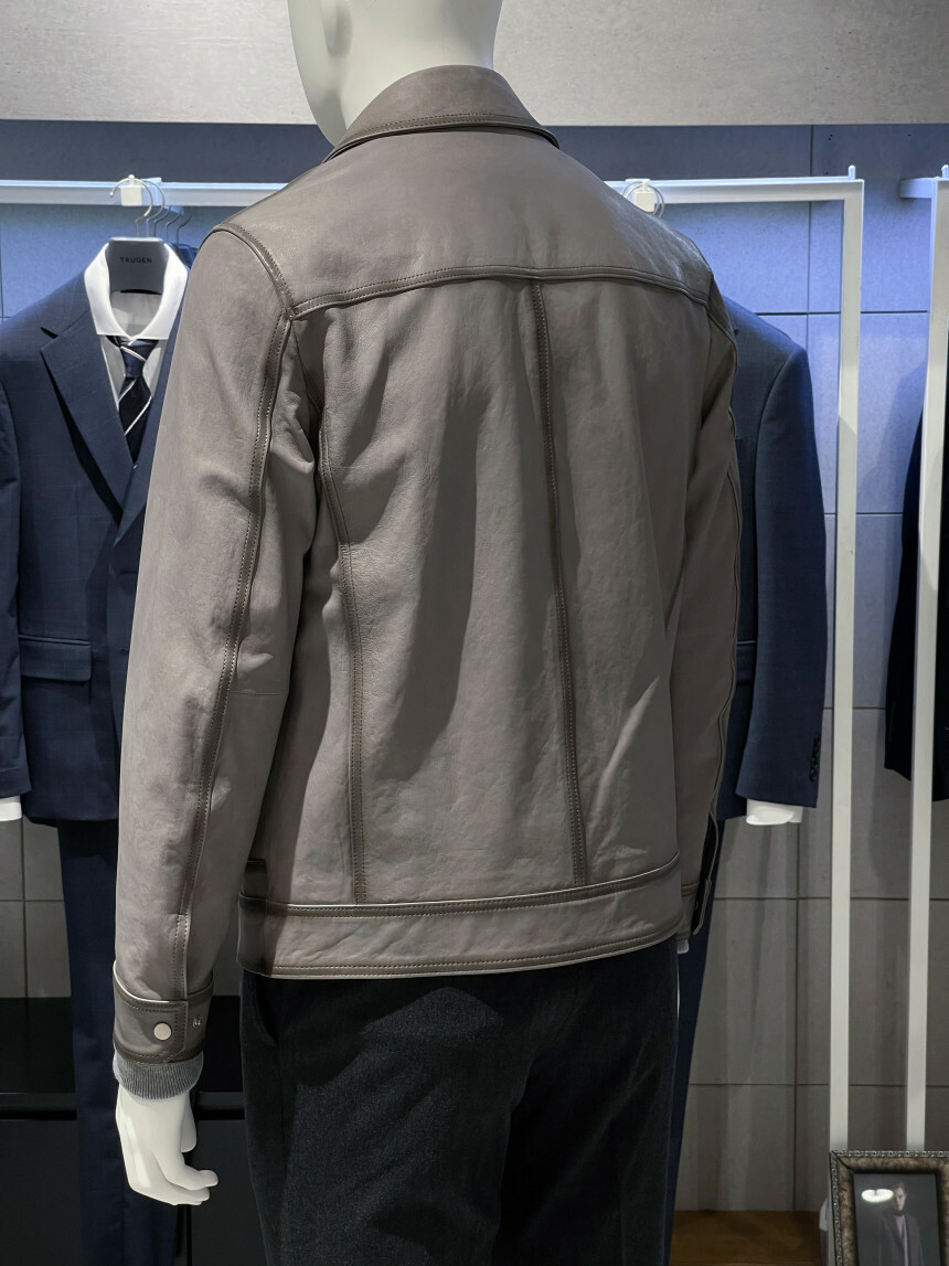 부드럽고 유연한 천연 양가죽 소재를 사용한 가죽 트러커