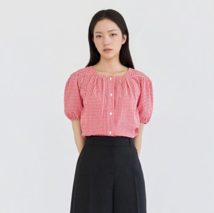 비비드한 컬러감이 포인트인 반팔 블라우스입니다.