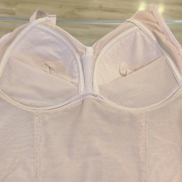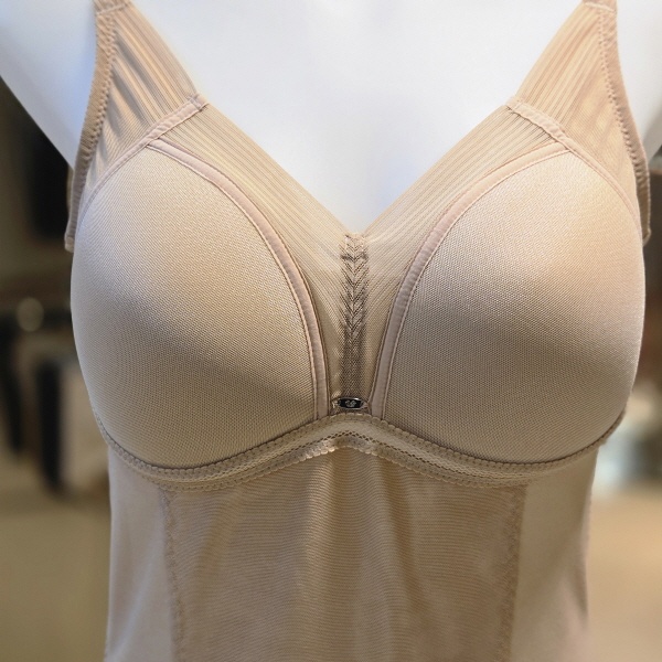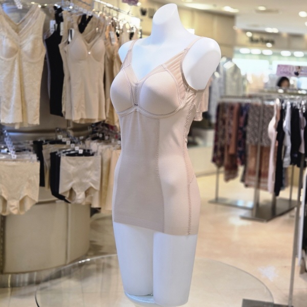 하이 컴포트 노와이어 몰드 쉐이퍼로 심플한 디자인에 쾌적하고 편안한 착용감을 주며 세탁후에도 컵의 형태 변형이 적고 앞판 중심과 허리라인에만 살짝 긴장감을 준 제품 컵사이즈 없이 밑가슴둘레 사이즈만 적용