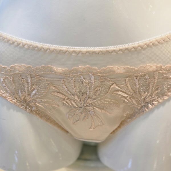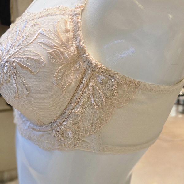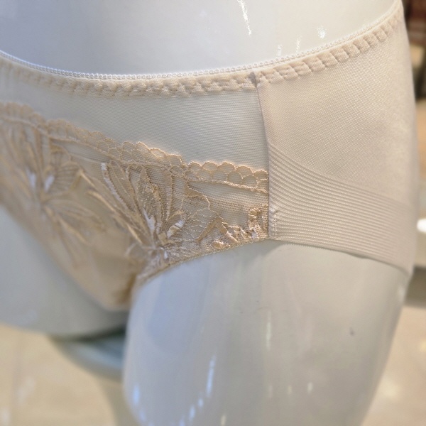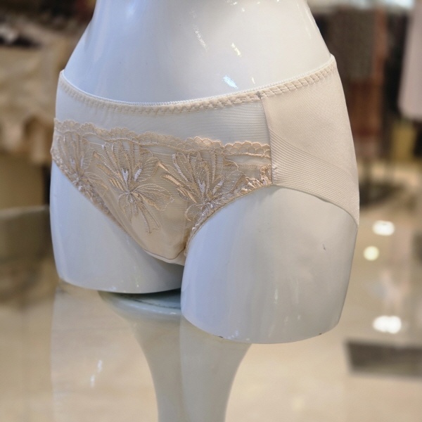 꽃자수와 섬세한 레이스를 사용하여 고급스러움을 더한 안정적인 피팅감의?풀메이크업 브라와 햄 팬티의 세트로?투명한 망으로 가슴상변의 안정감을 더해주고?넓은 옆선과 커브본으로 옆선을 매끈하게 만들어 주는 제품