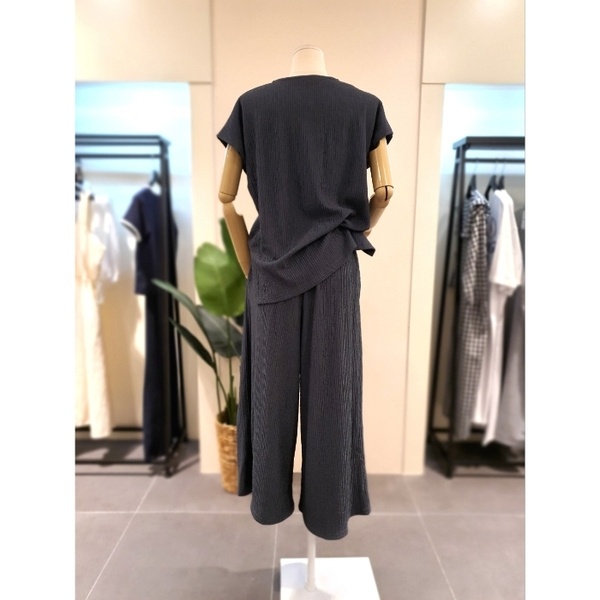 하의 - 전체적으로 와이드핏으로 편안하고 멋스럽게 착용 가능합니다. 가벼운 원단으로 한여름까지 착용 가능합니다. 핀턱이 잡혀 세련된 디자인입니다. 뒷밴딩으로 핏을 잡아주면서 77사이즈까지 착용가능합니다. 주머니 있습니다.
