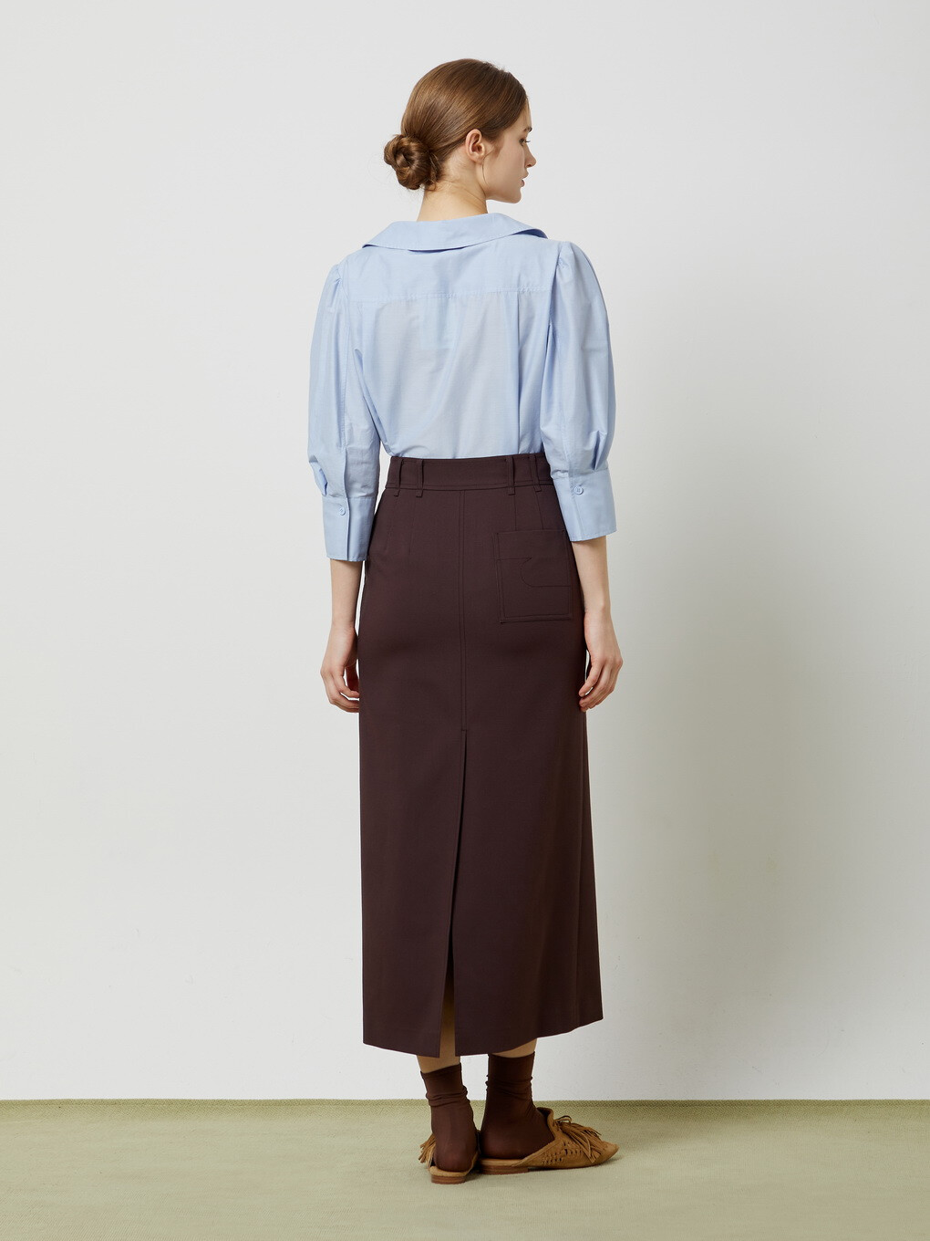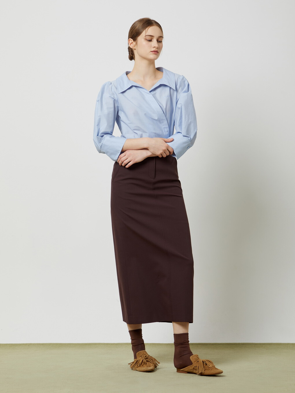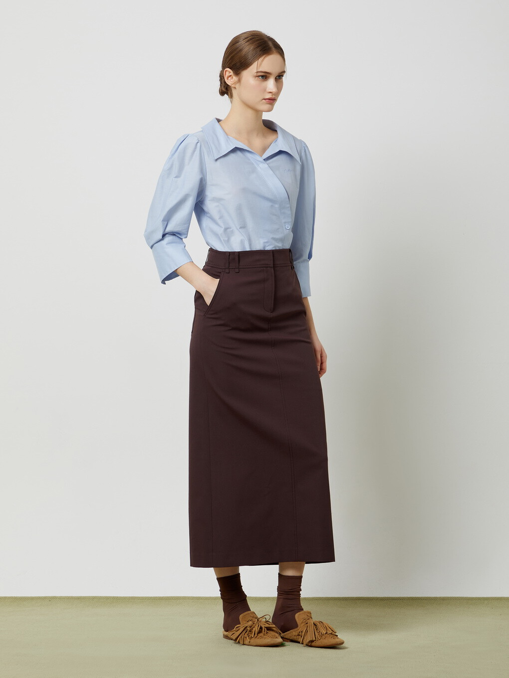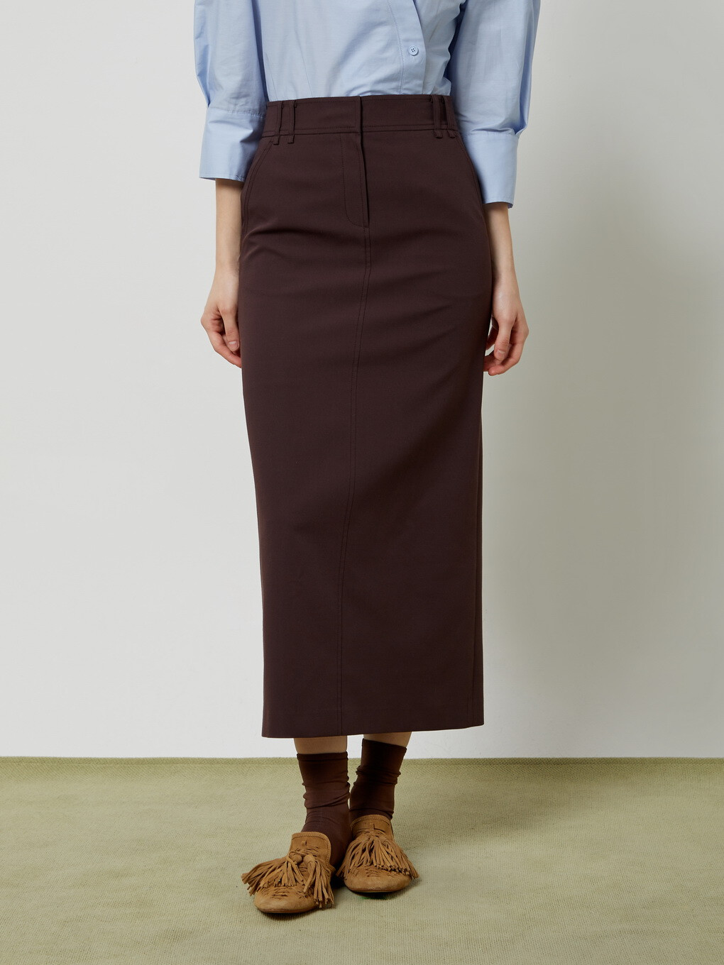 - 전면심지를 부착해 고시감 있는 시크한 스타일의 롱스커트입니다.