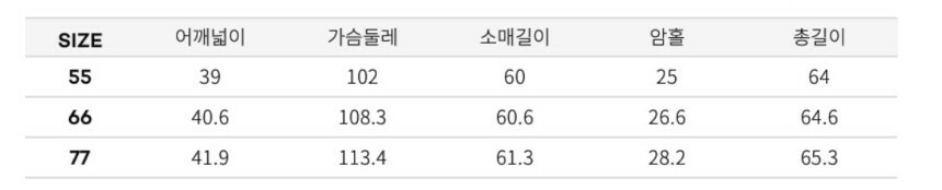 · 안감 : □ 전체 ■ 부분 □ 없음