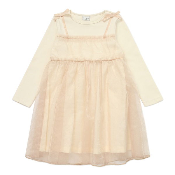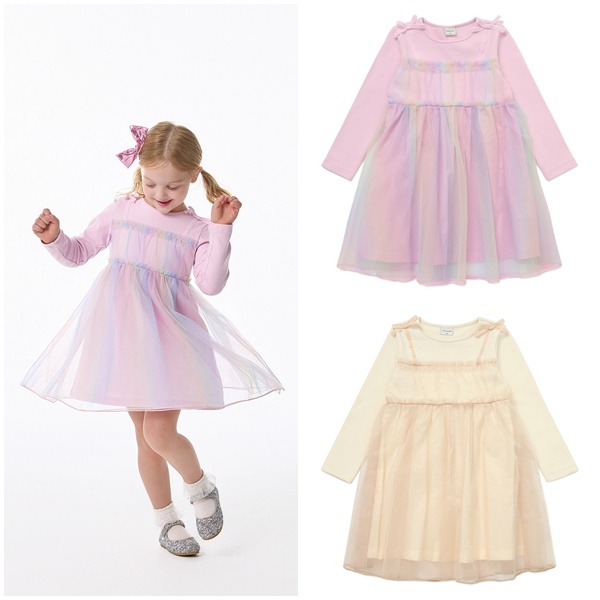 티셔츠에 샤 원피스를 레이어드 매치한 듯한 샤 레이어드 원피스입니다.