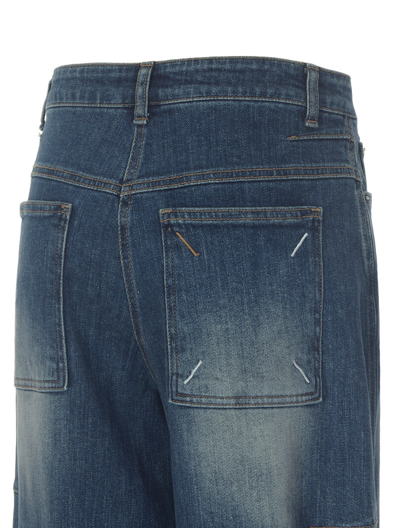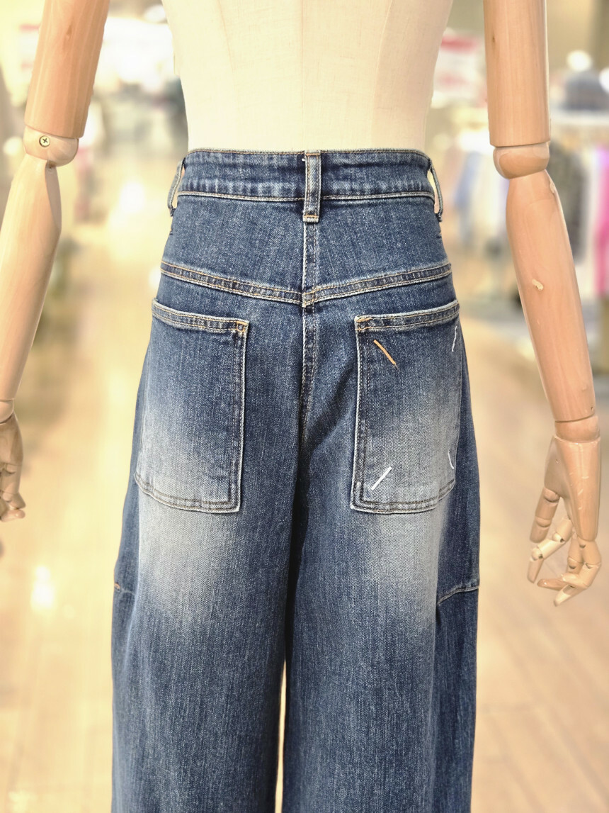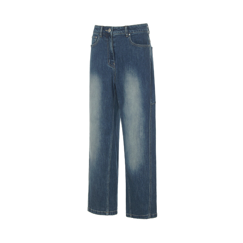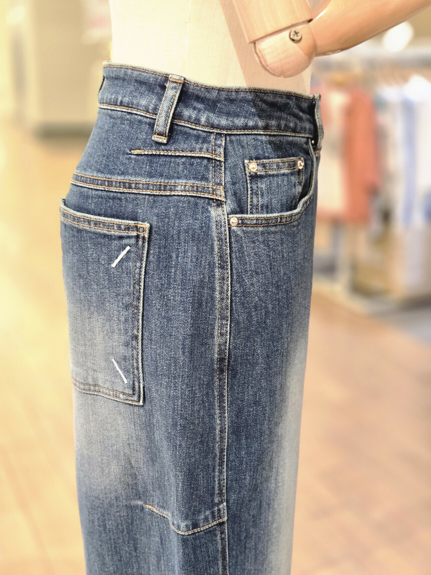 절개선을 포인트로준 힙사각포켓 한쪽 자수포인트