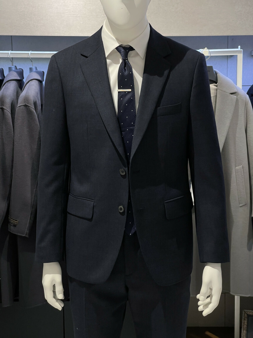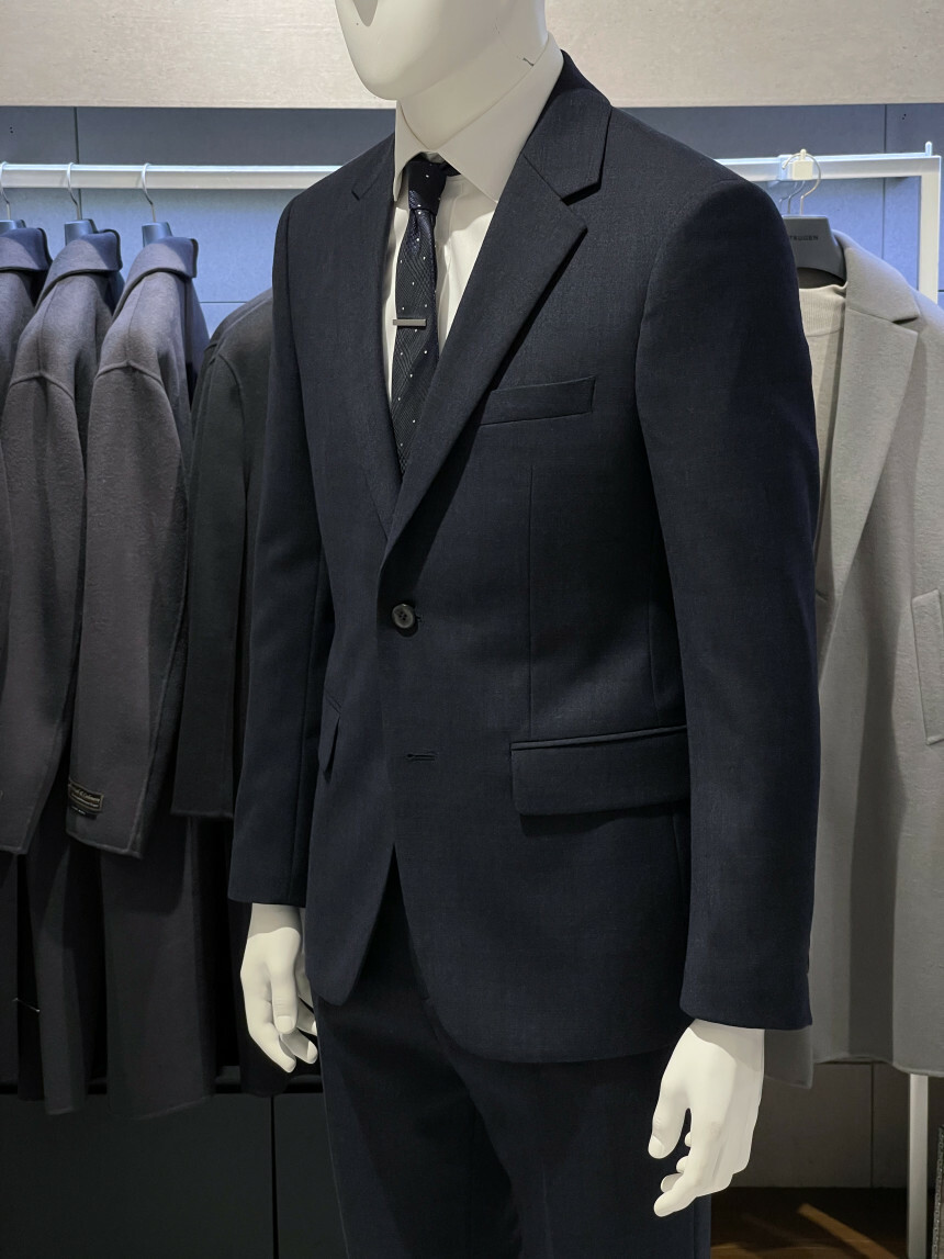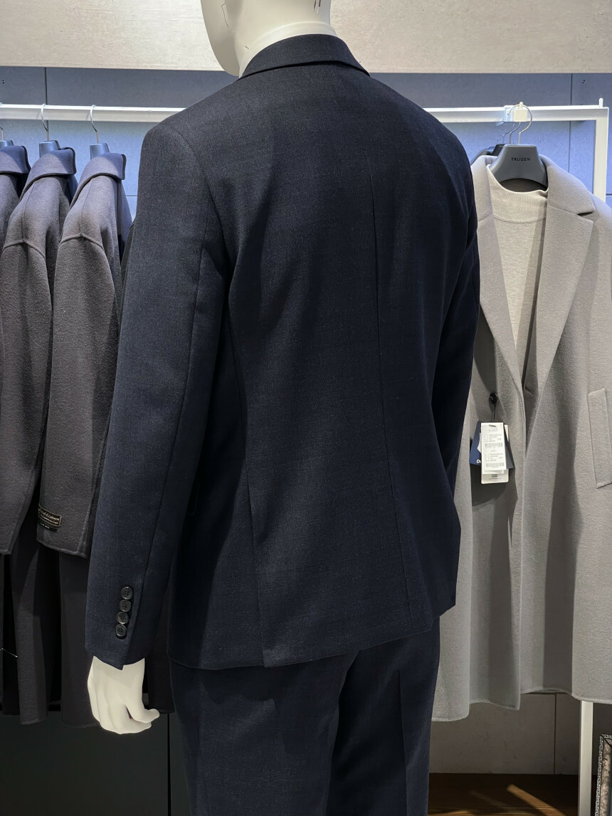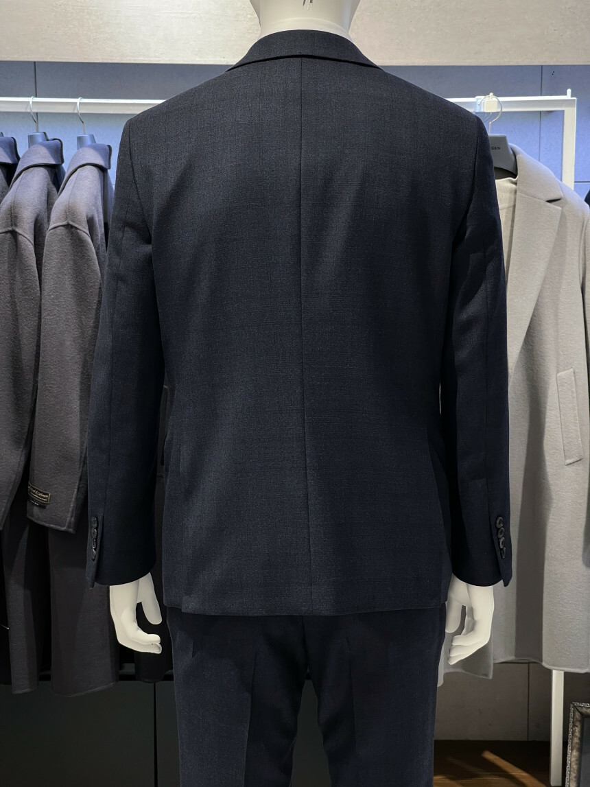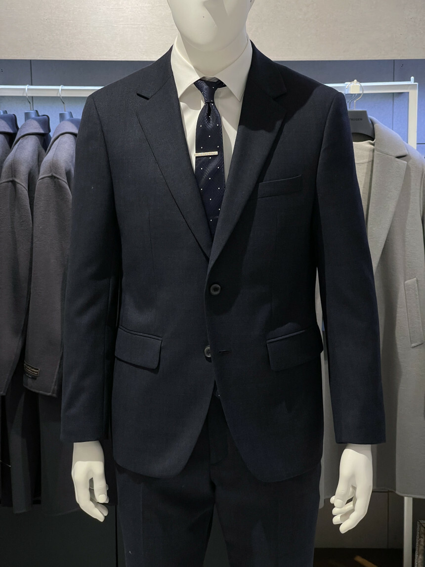 ·컬러감이 세련되며 체크가 은은하게 숨어 있는 투톤 네이비 수트