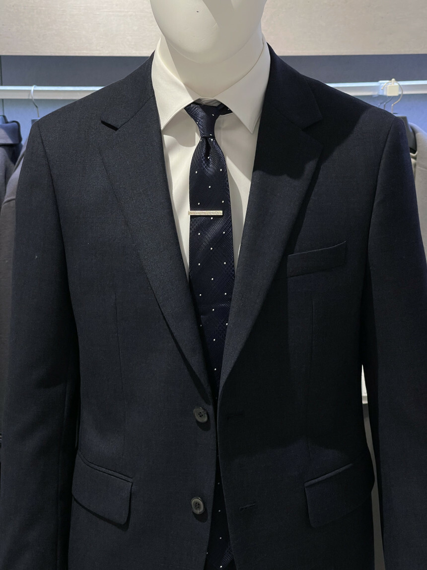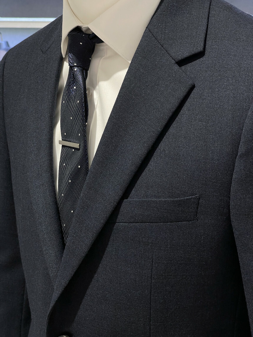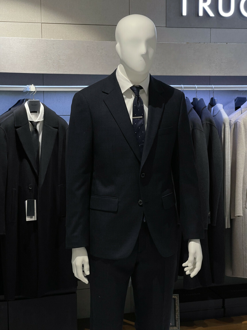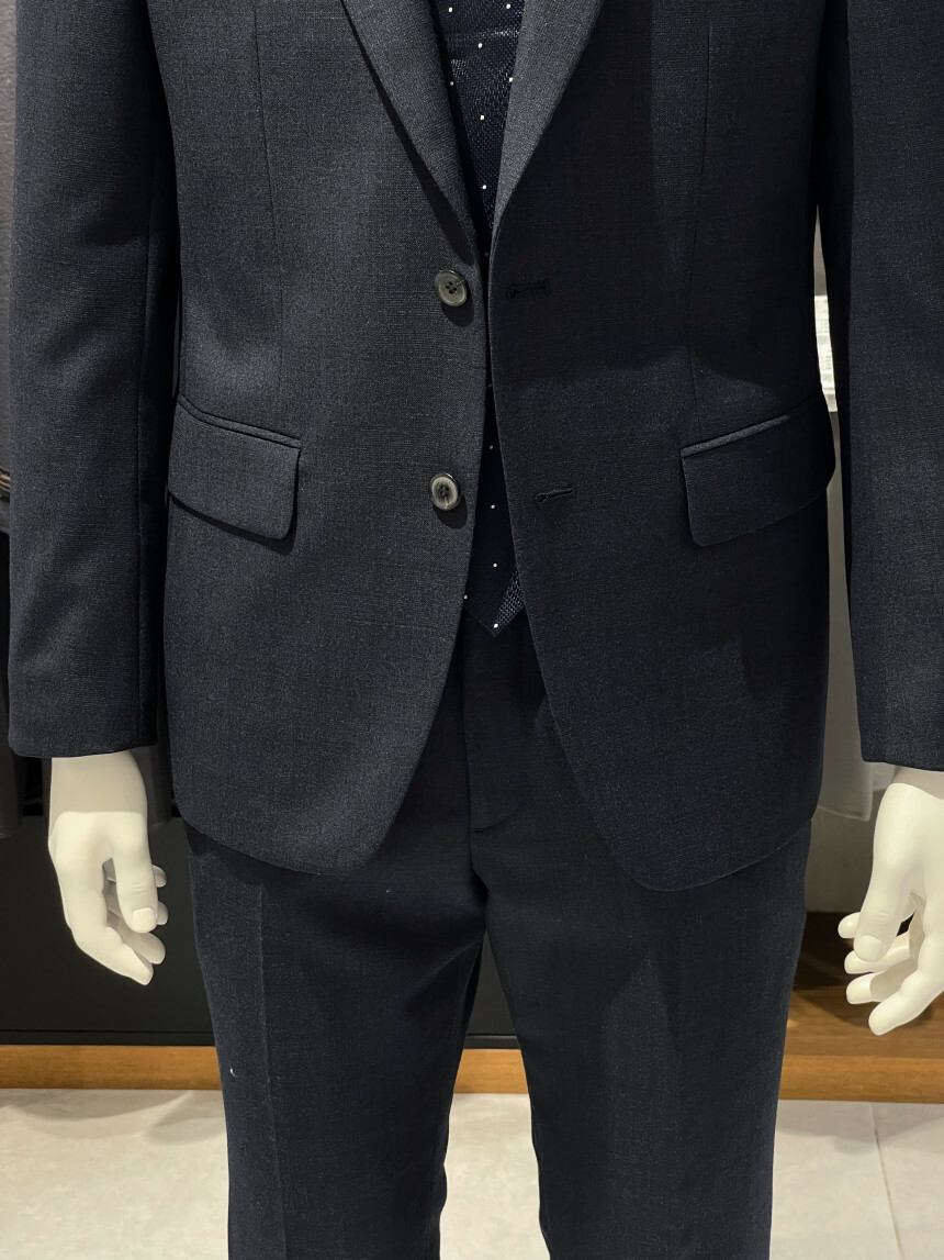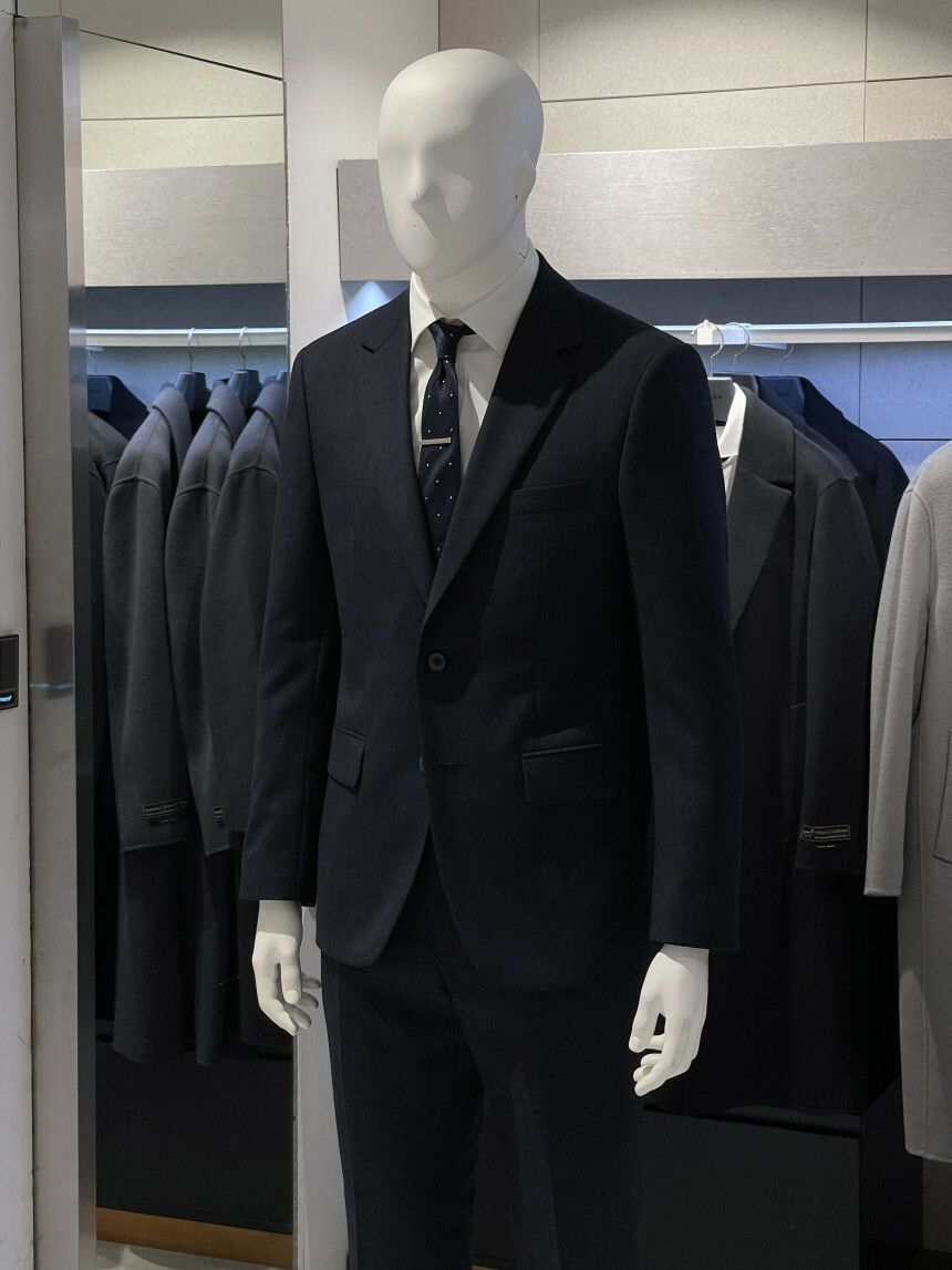 ·컬러감이 세련되며 체크가 은은하게 숨어 있는 투톤 네이비 수트