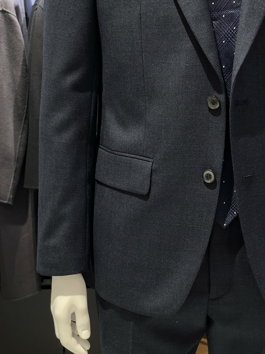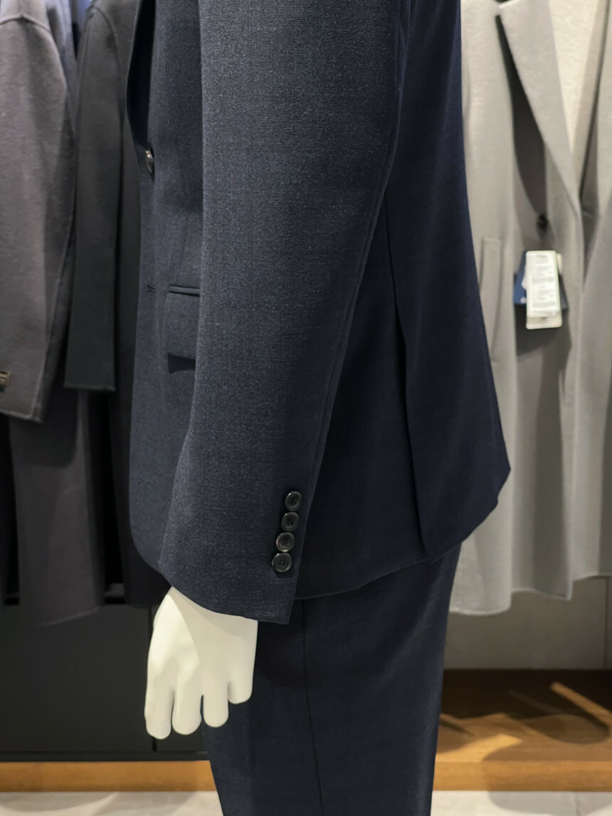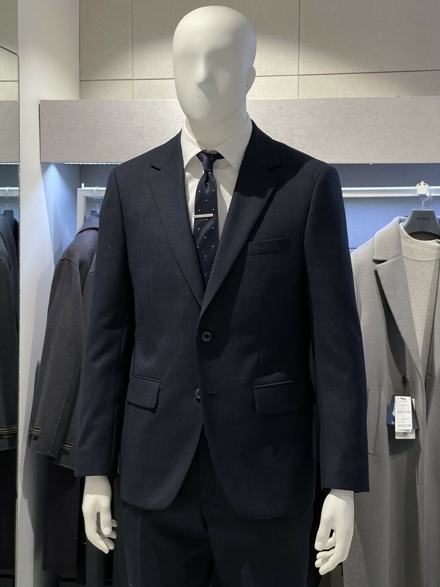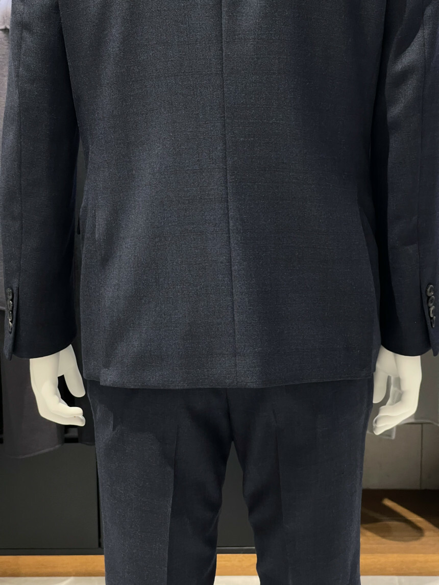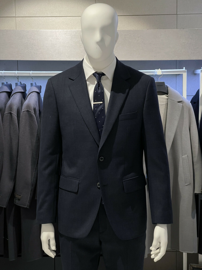 ·컬러감이 세련되며 체크가 은은하게 숨어 있는 투톤 네이비 수트