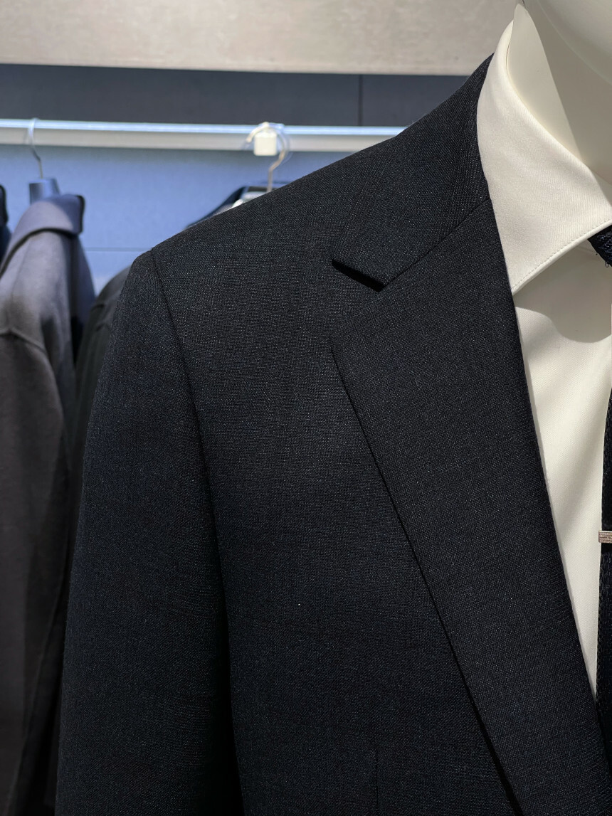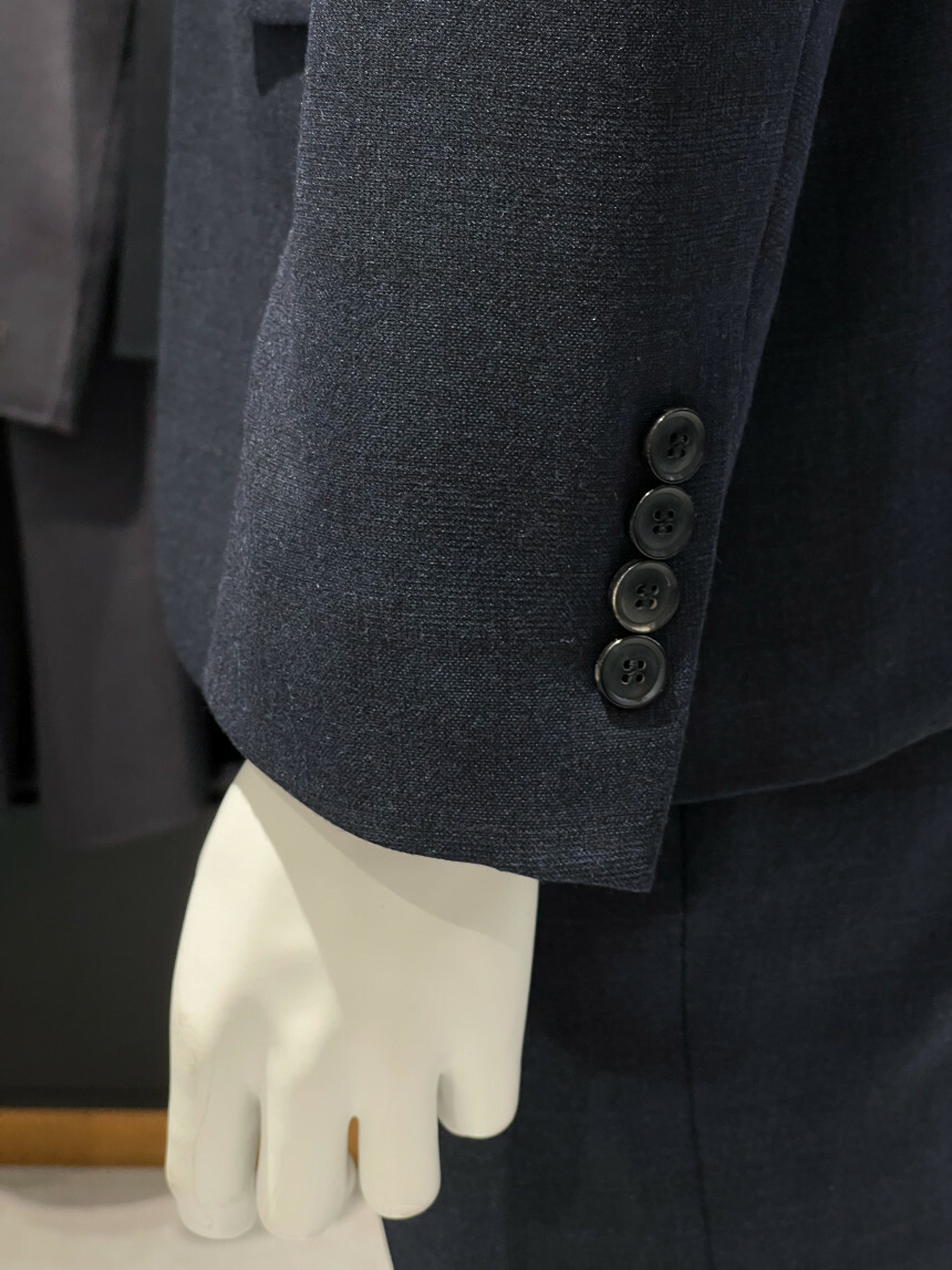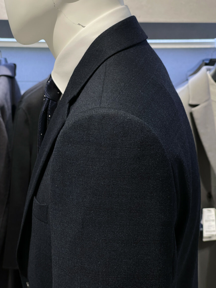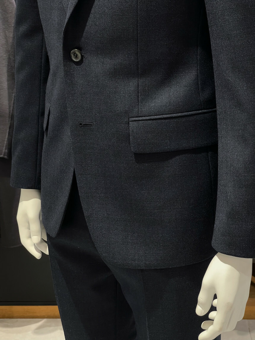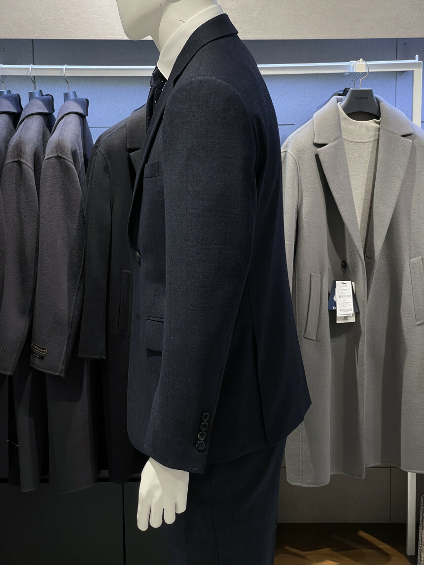 ·컬러감이 세련되며 체크가 은은하게 숨어 있는 투톤 네이비 수트