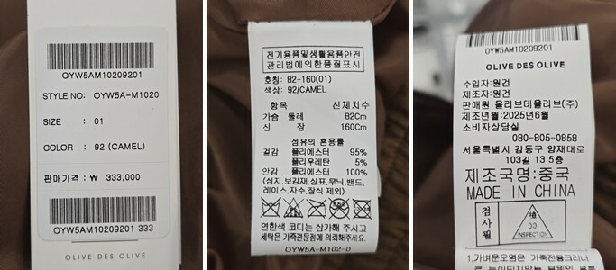 · 안감 : ■ 전체 □ 부분 □ 없음