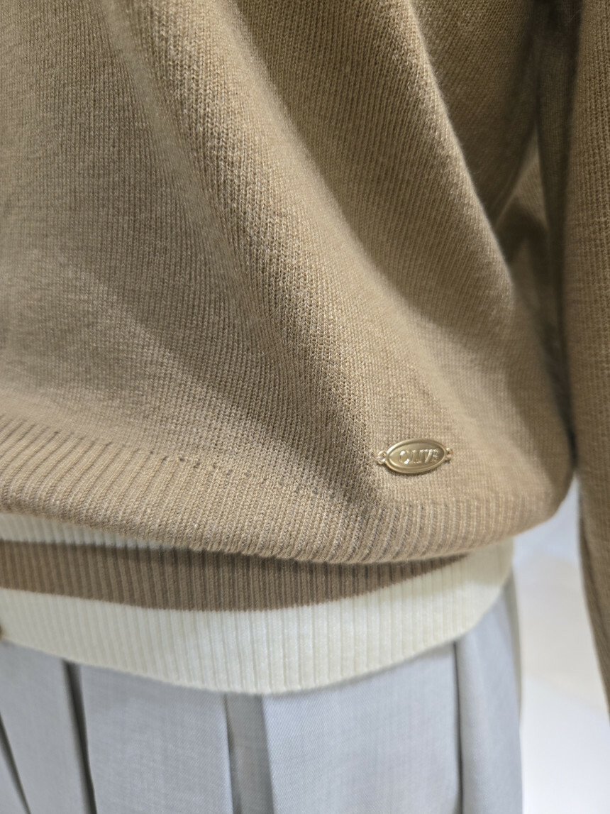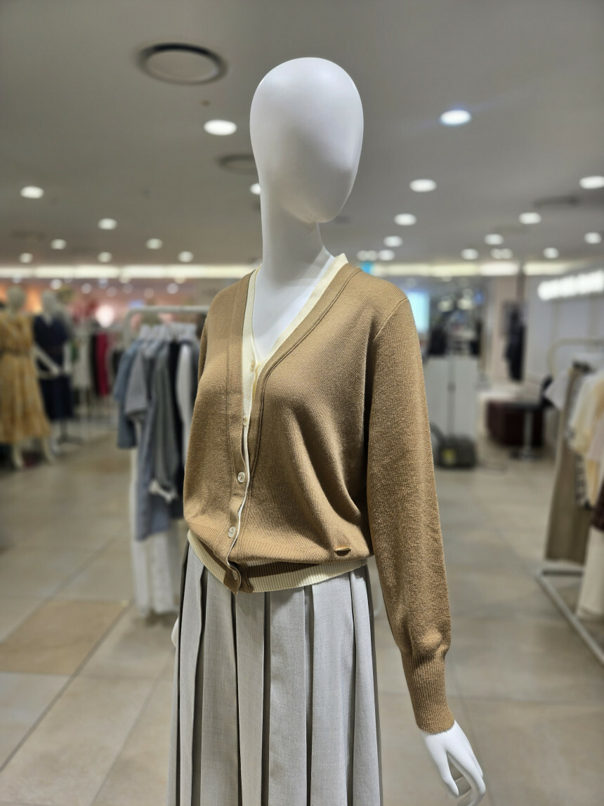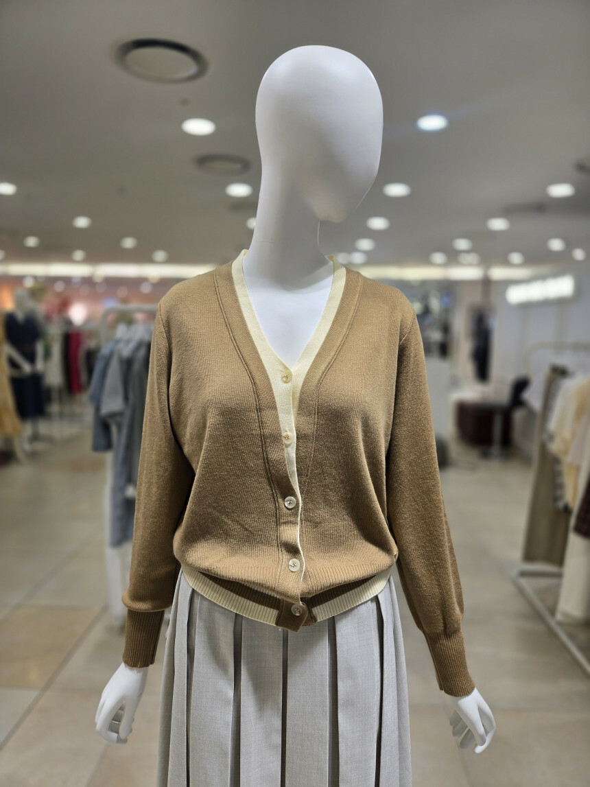 V넥 배색 베이직 가디건 YK5A-D603
